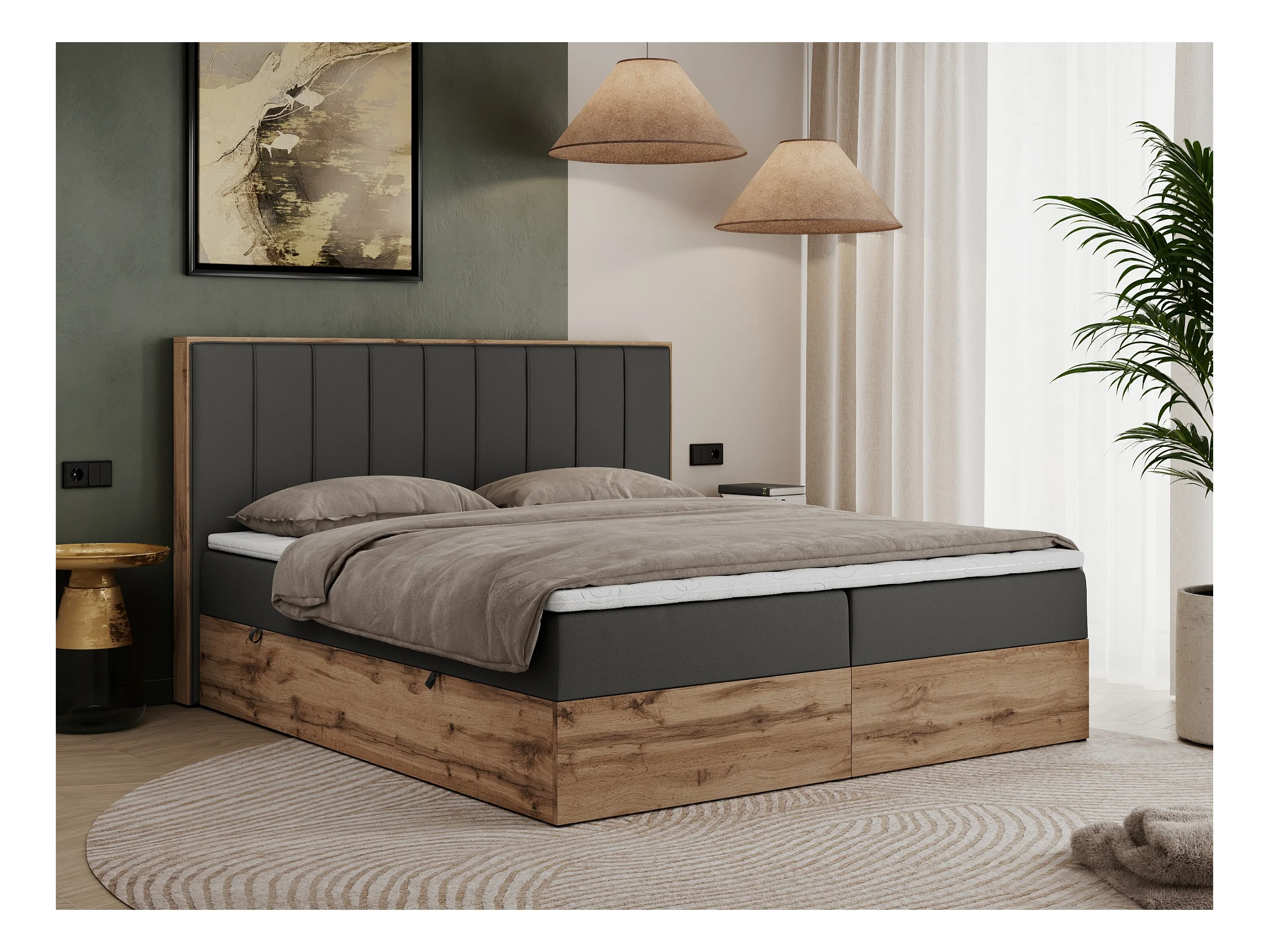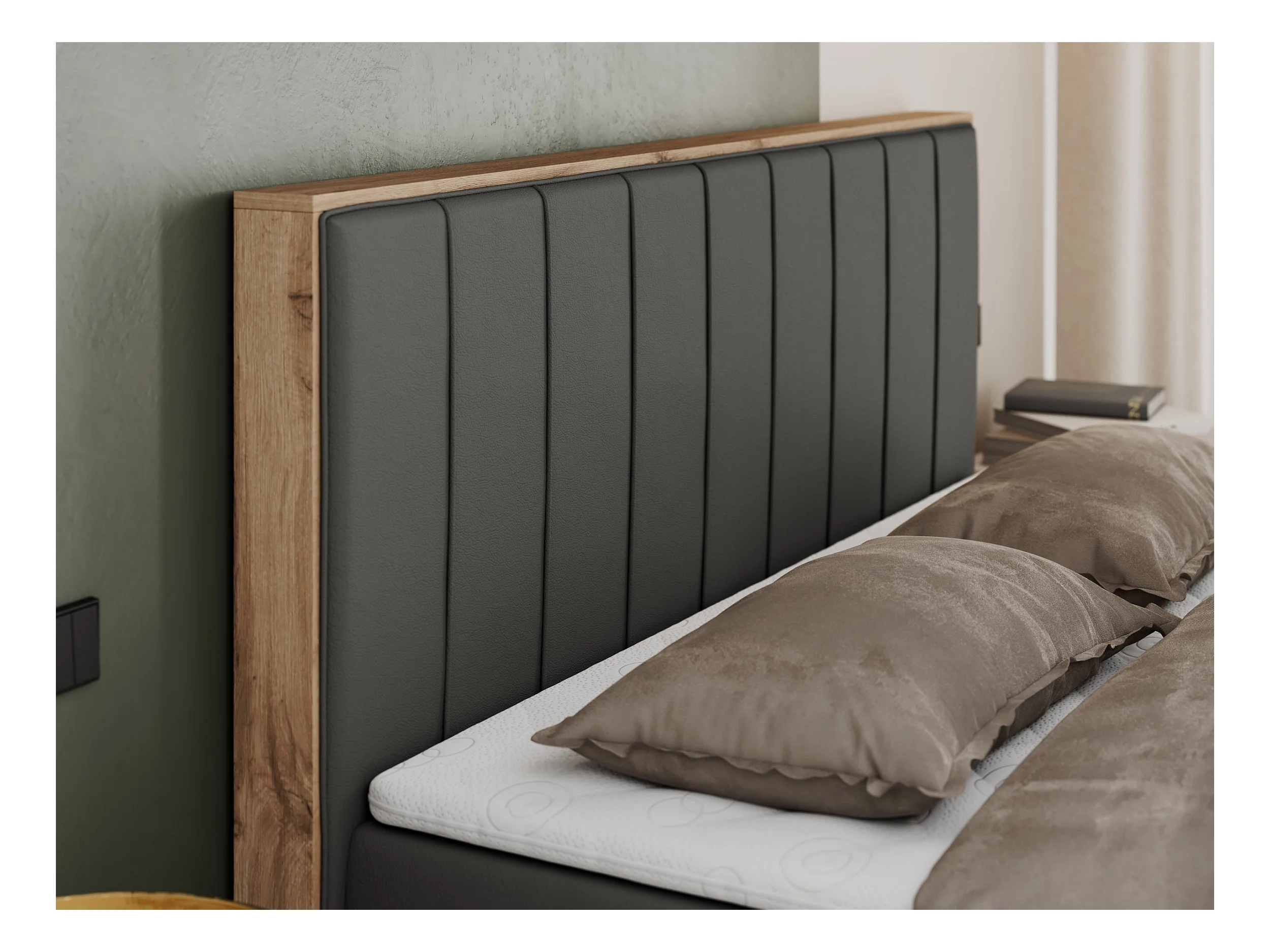 Boxspringbett BELLISSIMO - mit gestepptem Kopfteil, Polsterbett mit zwei Bettkästen, Multipocket-Matratze - 180x200 cm - H3 - Dunkelgrau Kunstleder
