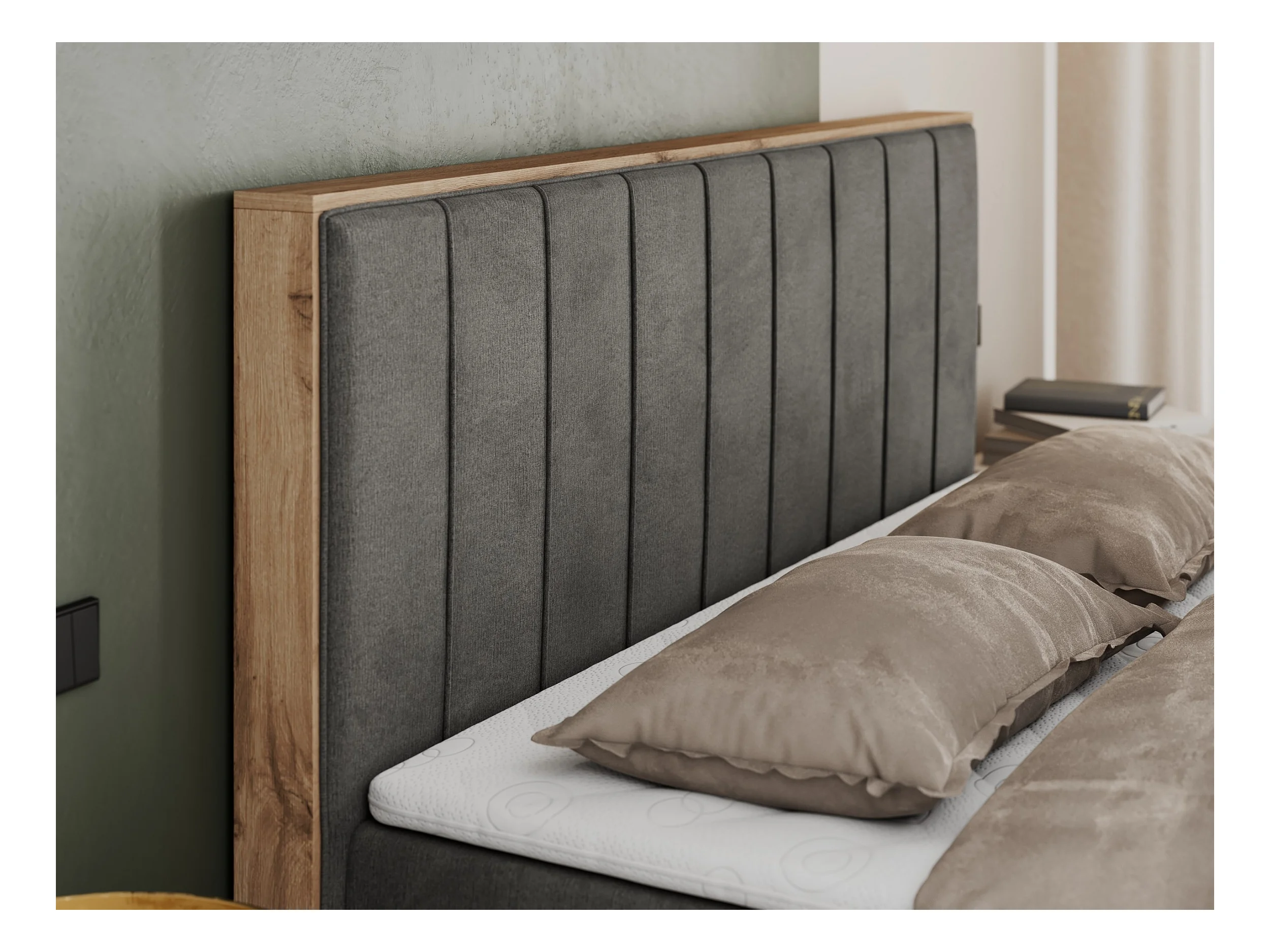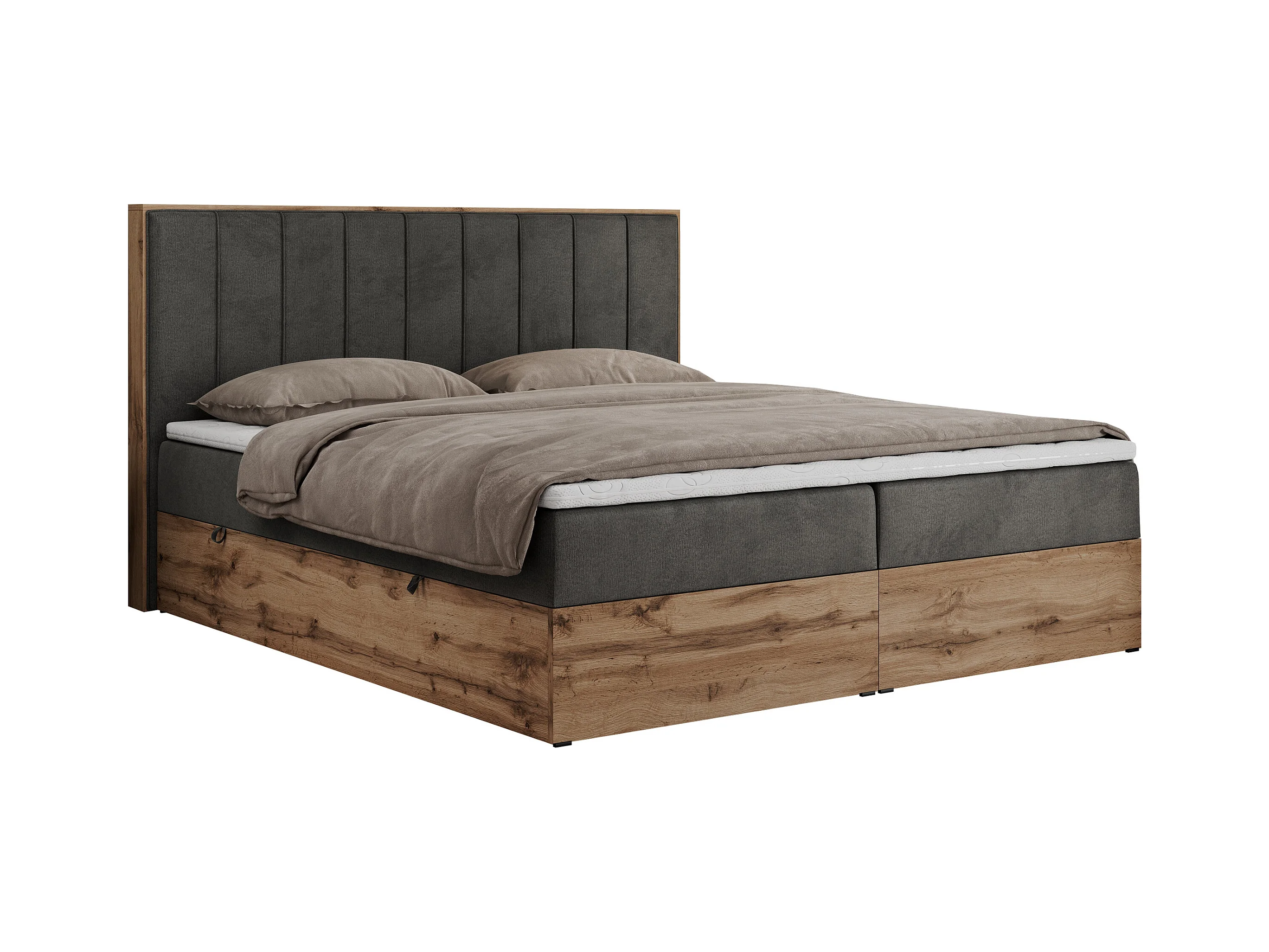 Boxspringbett BELLISSIMO - mit gestepptem Kopfteil, Polsterbett mit zwei Bettkästen, Multipocket-Matratze - 180x200 cm - H4 - Dunkelgrau Velvet