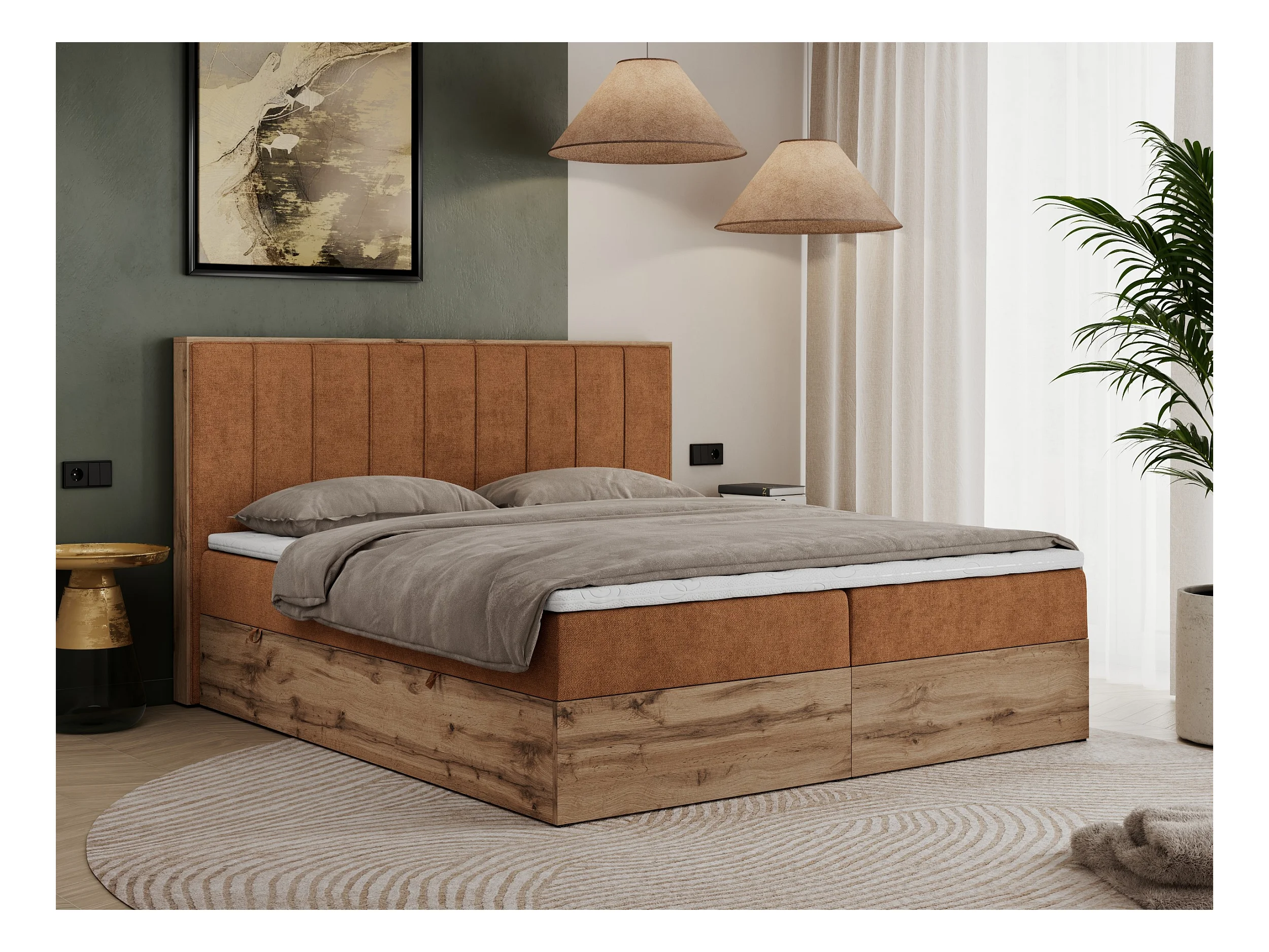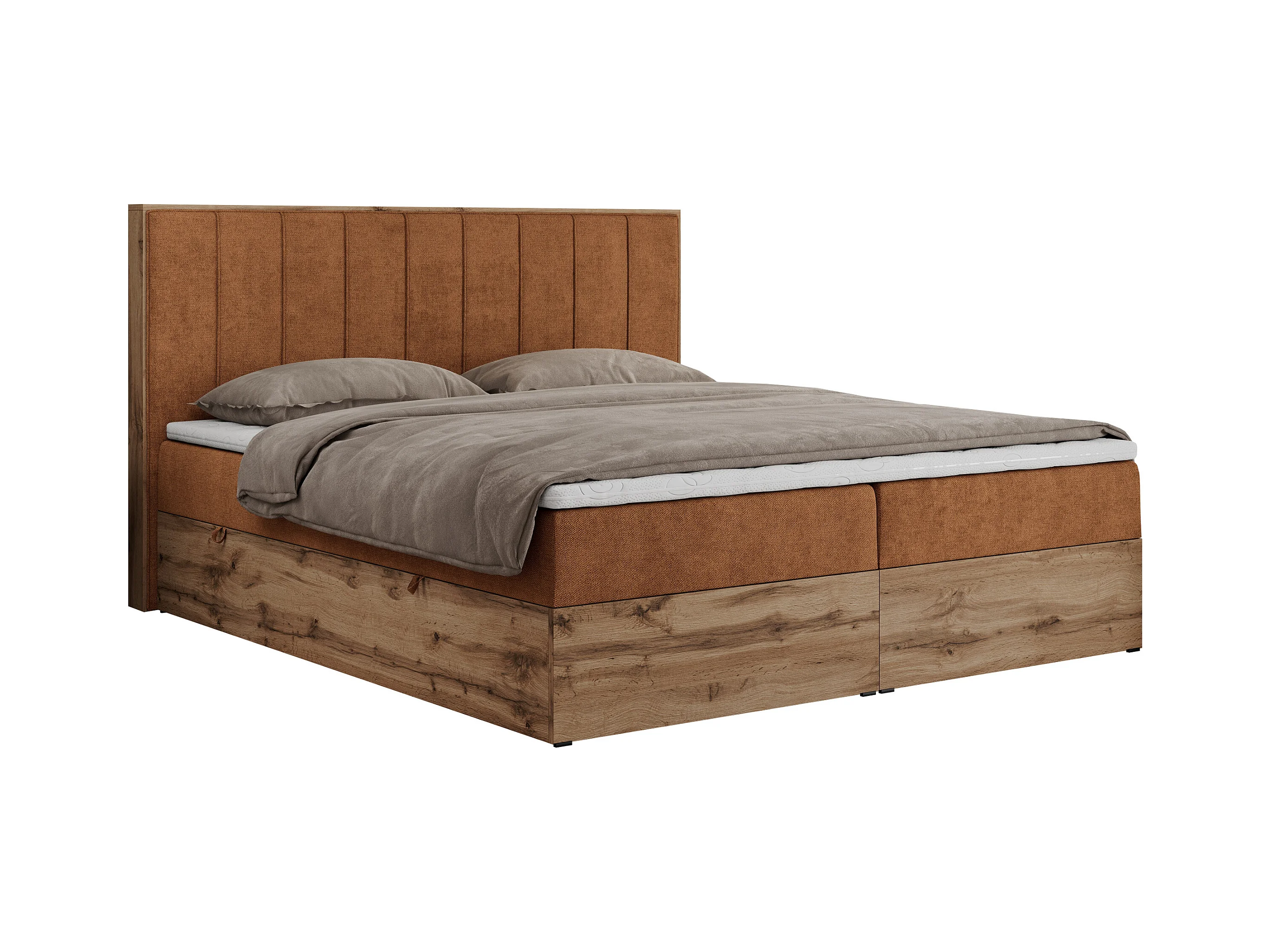 Boxspringbett BELLISSIMO - mit gestepptem Kopfteil, Polsterbett mit zwei Bettkästen, Multipocket-Matratze - 200x200 cm - H4 - Orange Strukture