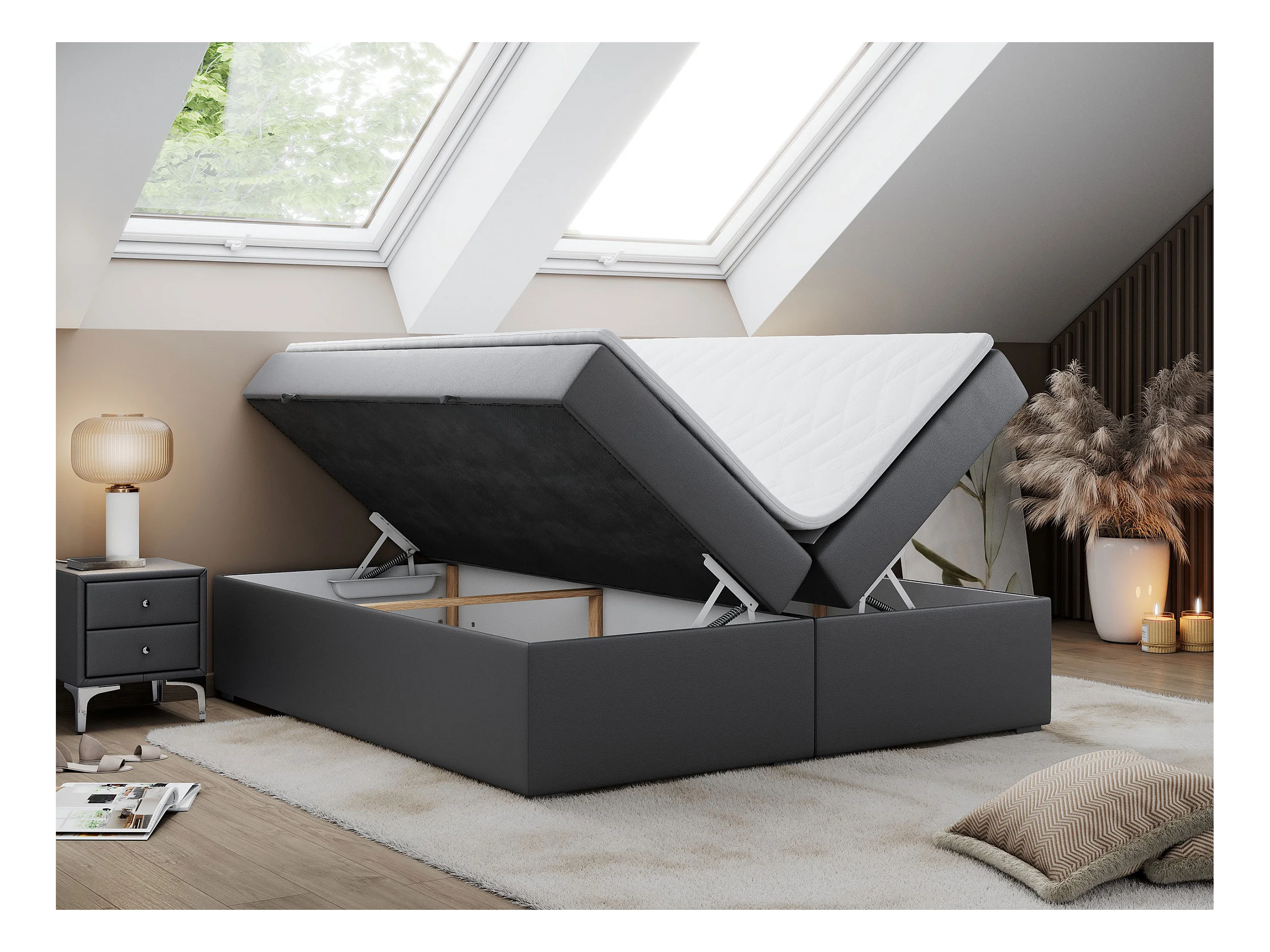 Boxspringbett BESS - Doppelbett mit Stauraum, Polsterbett, Multipocket-Matratzen und Topper - 120x200 cm - H4 - Dunkelgrau Kunstleder