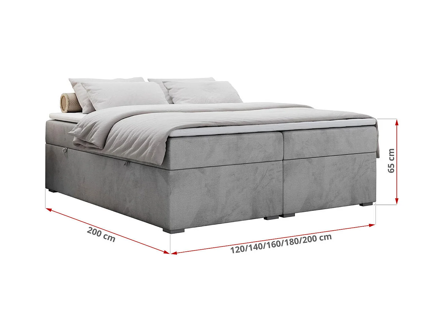 Boxspringbett BESS - Doppelbett mit Stauraum, Polsterbett, Multipocket-Matratzen und Topper - 160x200 cm - H3 - Hellgrau Velvet