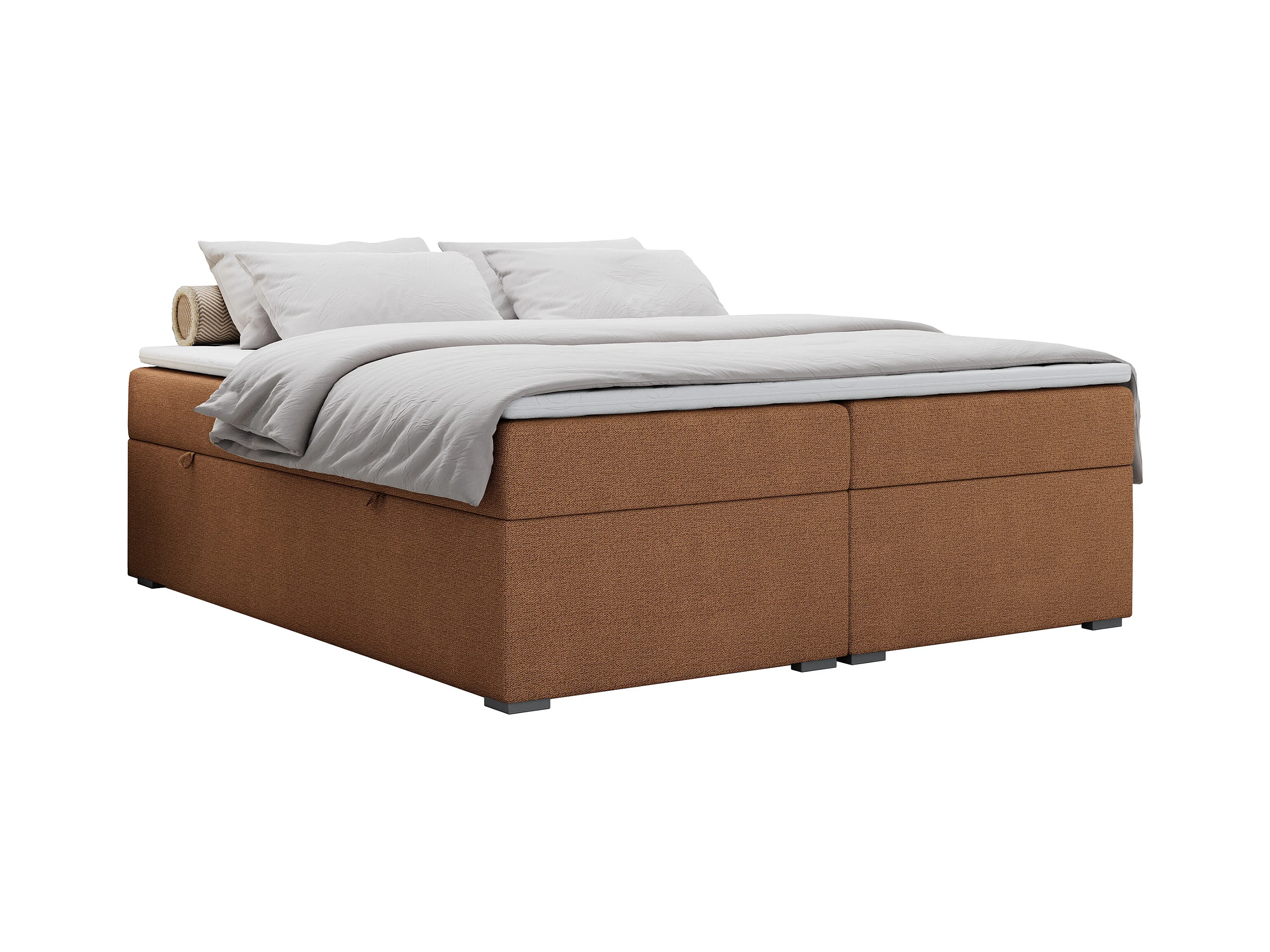 Boxspringbett BESS - Doppelbett mit Stauraum, Polsterbett, Multipocket-Matratzen und Topper - 160x200 cm - H3 - Orange Strukture