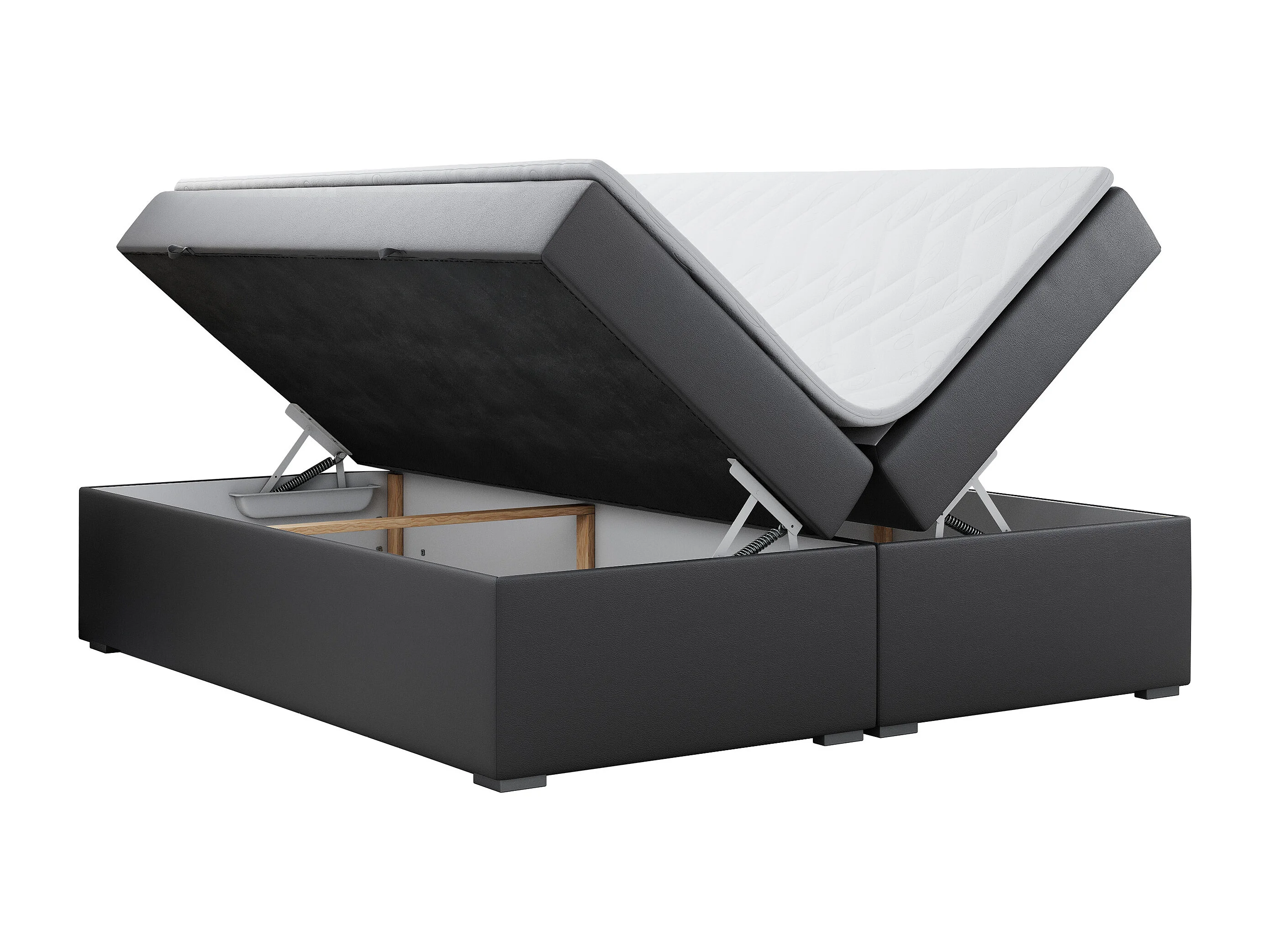Boxspringbett BESS - Doppelbett mit Stauraum, Polsterbett, Multipocket-Matratzen und Topper - 160x200 cm - H4 - Dunkelgrau Kunstleder
