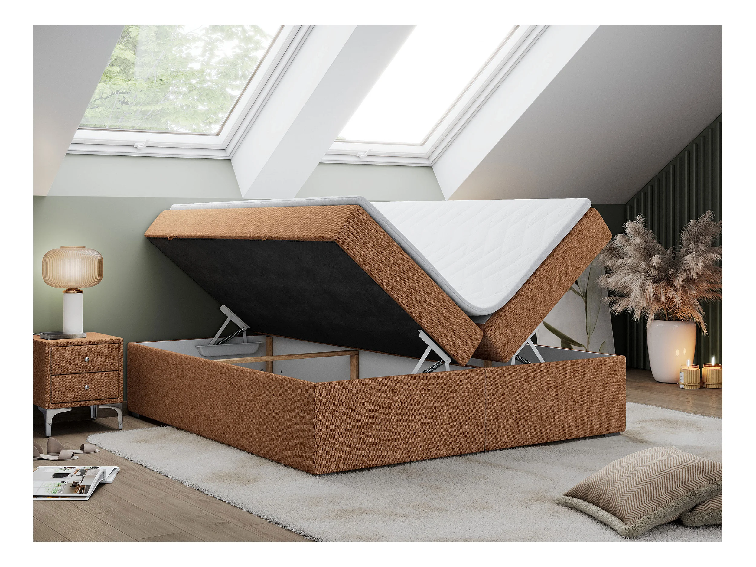Boxspringbett BESS - Doppelbett mit Stauraum, Polsterbett, Multipocket-Matratzen und Topper - 160x200 cm - H4 - Orange Strukture