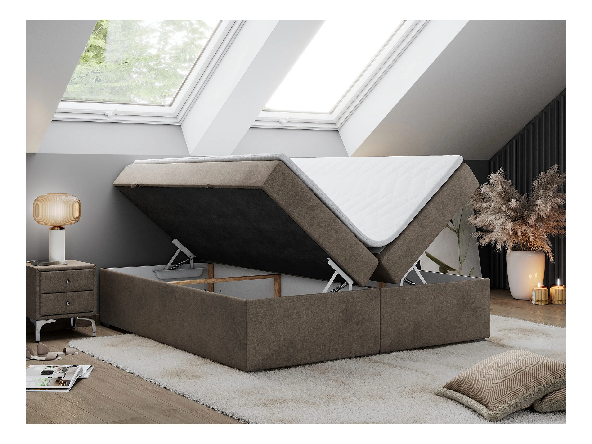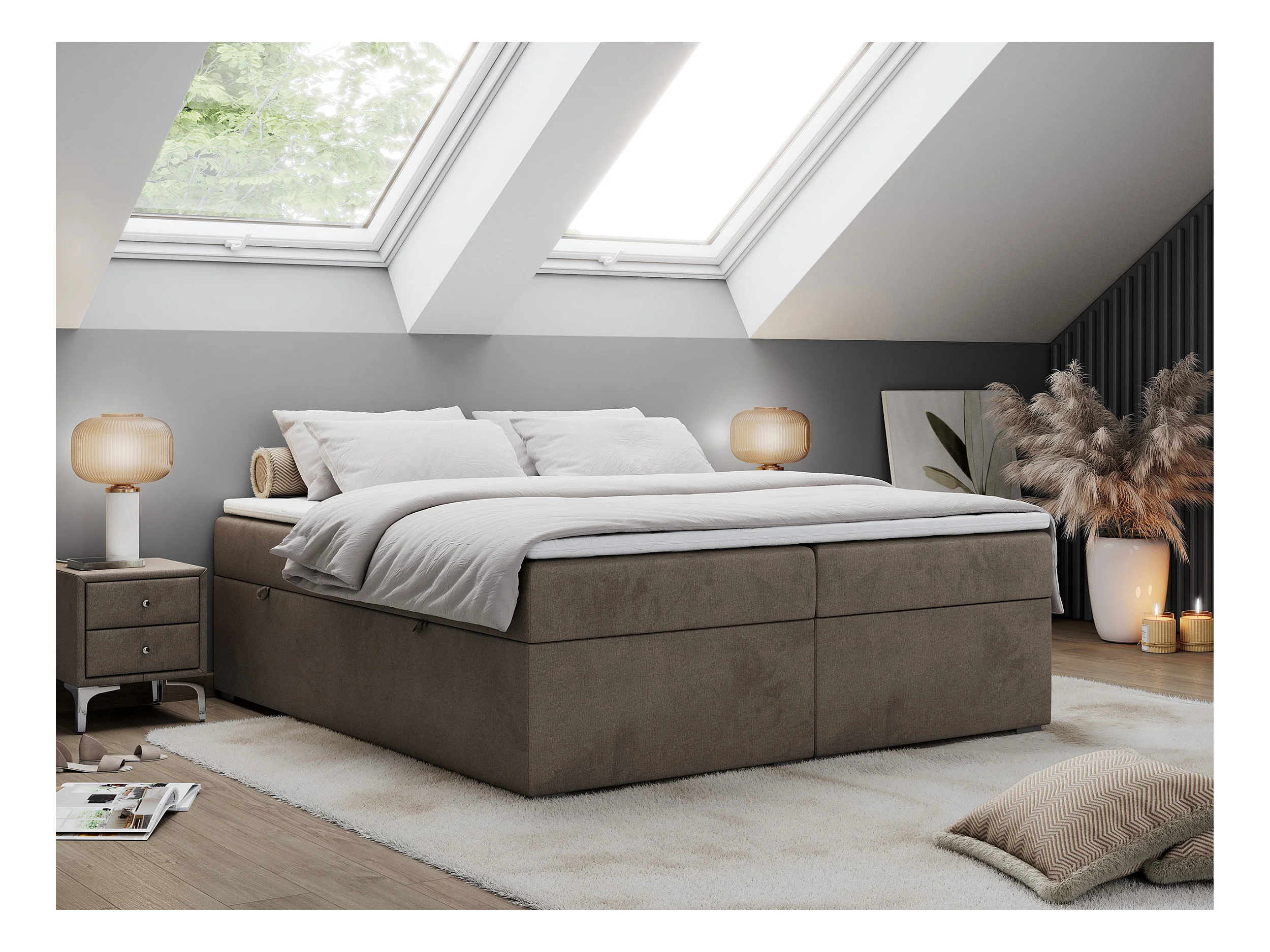 Boxspringbett BESS - Doppelbett mit Stauraum, Polsterbett, Multipocket-Matratzen und Topper - 180x200 cm - H4 - Braun Velvet