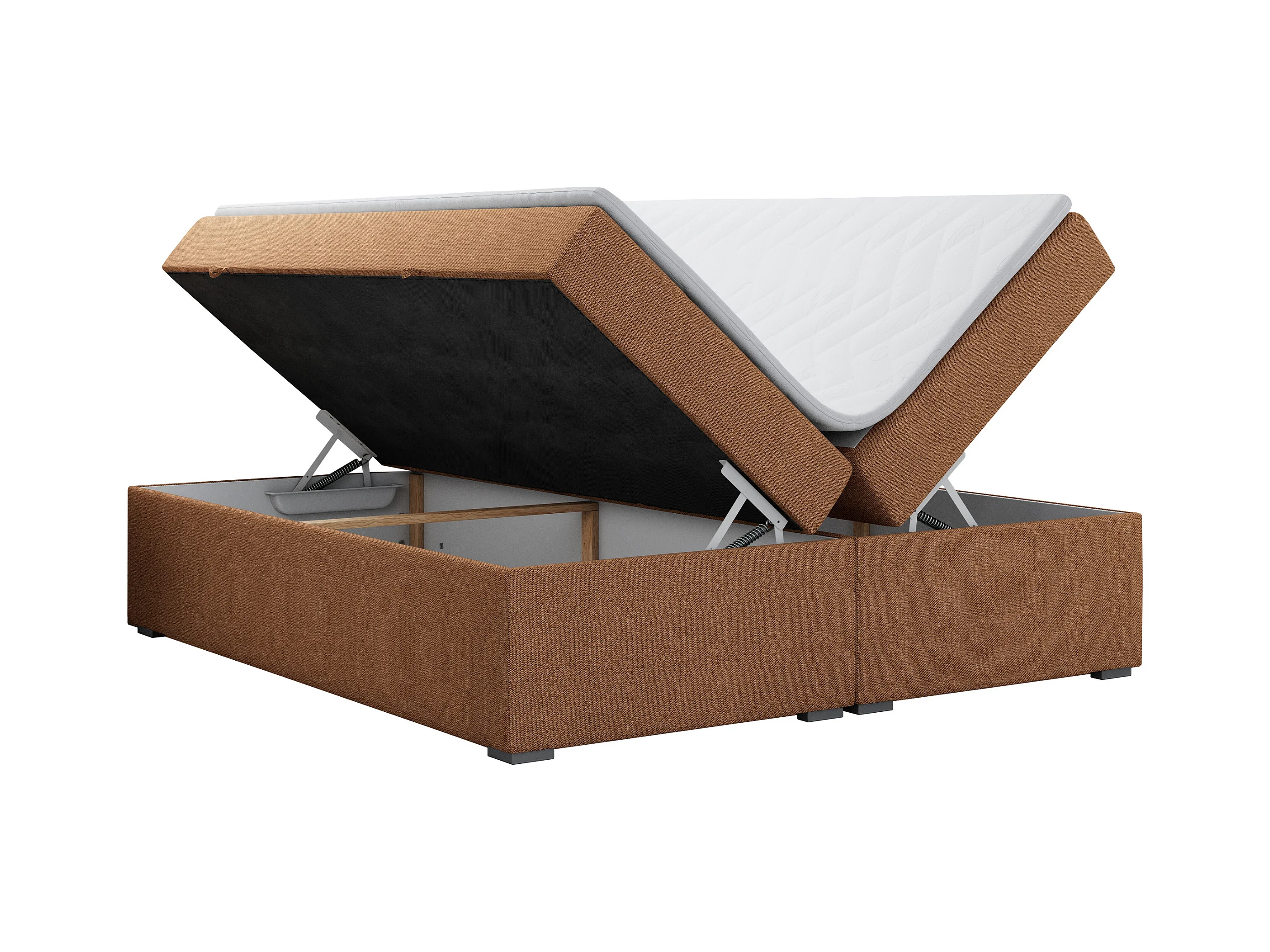 Boxspringbett BESS - Doppelbett mit Stauraum, Polsterbett, Multipocket-Matratzen und Topper - 180x200 cm - H4 - Orange Strukture