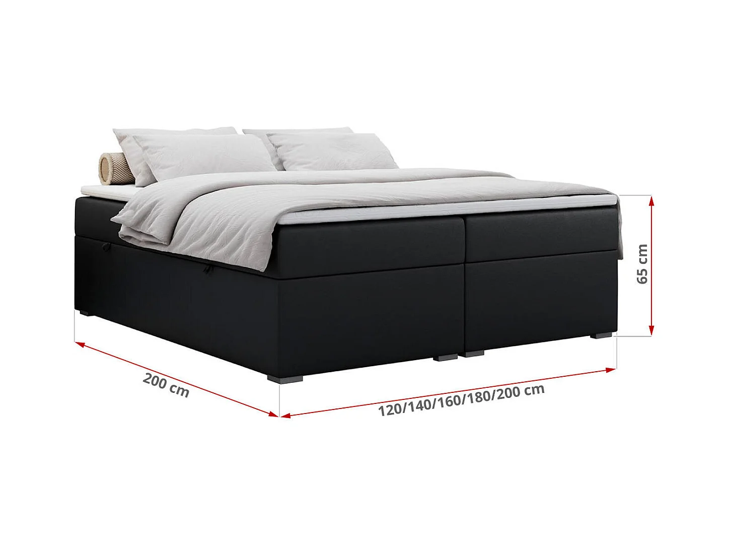 Boxspringbett BESS - Doppelbett mit Stauraum, Polsterbett, Multipocket-Matratzen und Topper - 180x200 cm - H4 - Schwarz Kunstleder
