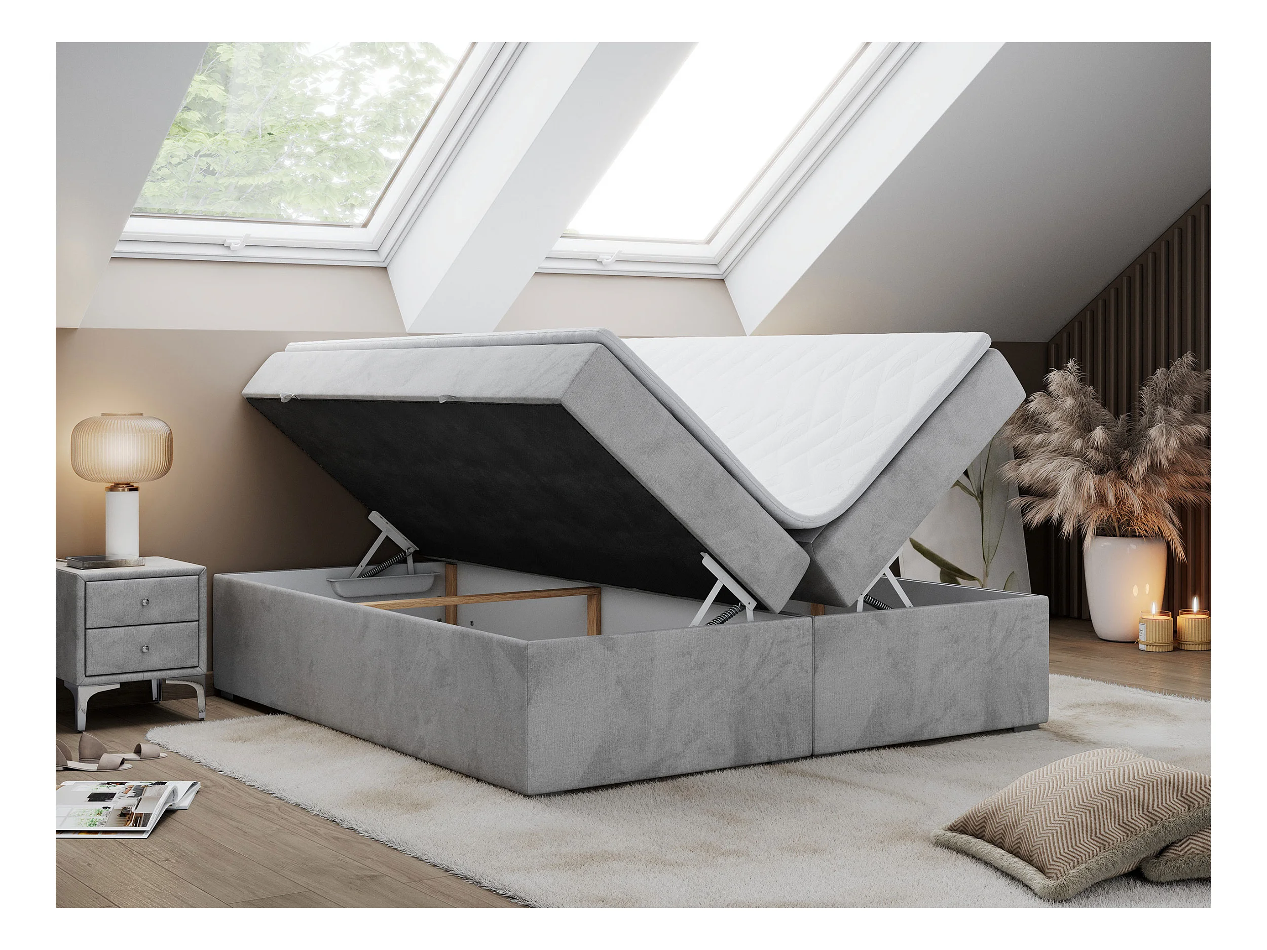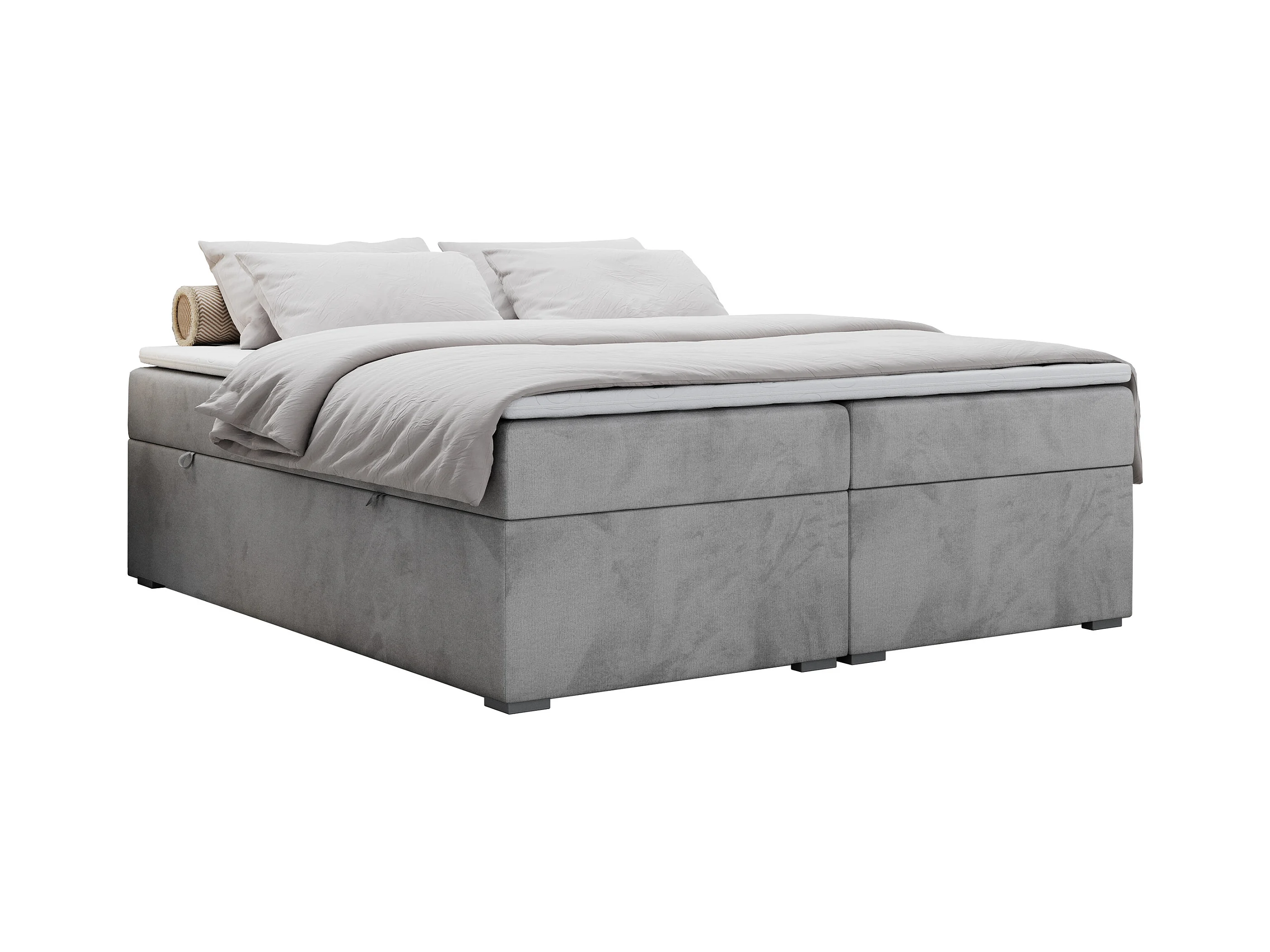 Boxspringbett BESS - Doppelbett mit Stauraum, Polsterbett, Multipocket-Matratzen und Topper - 200x200 cm - H4 - Hellgrau Velvet