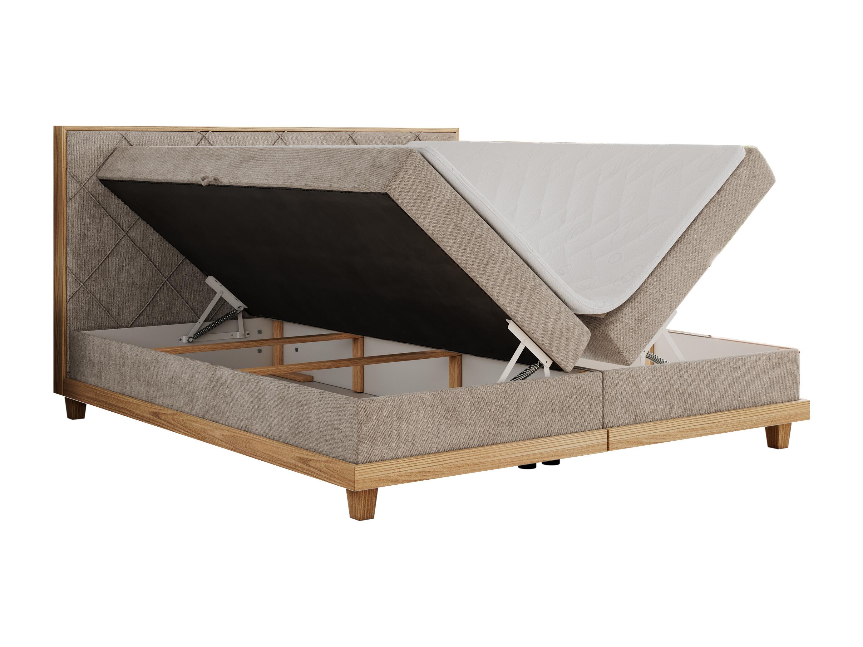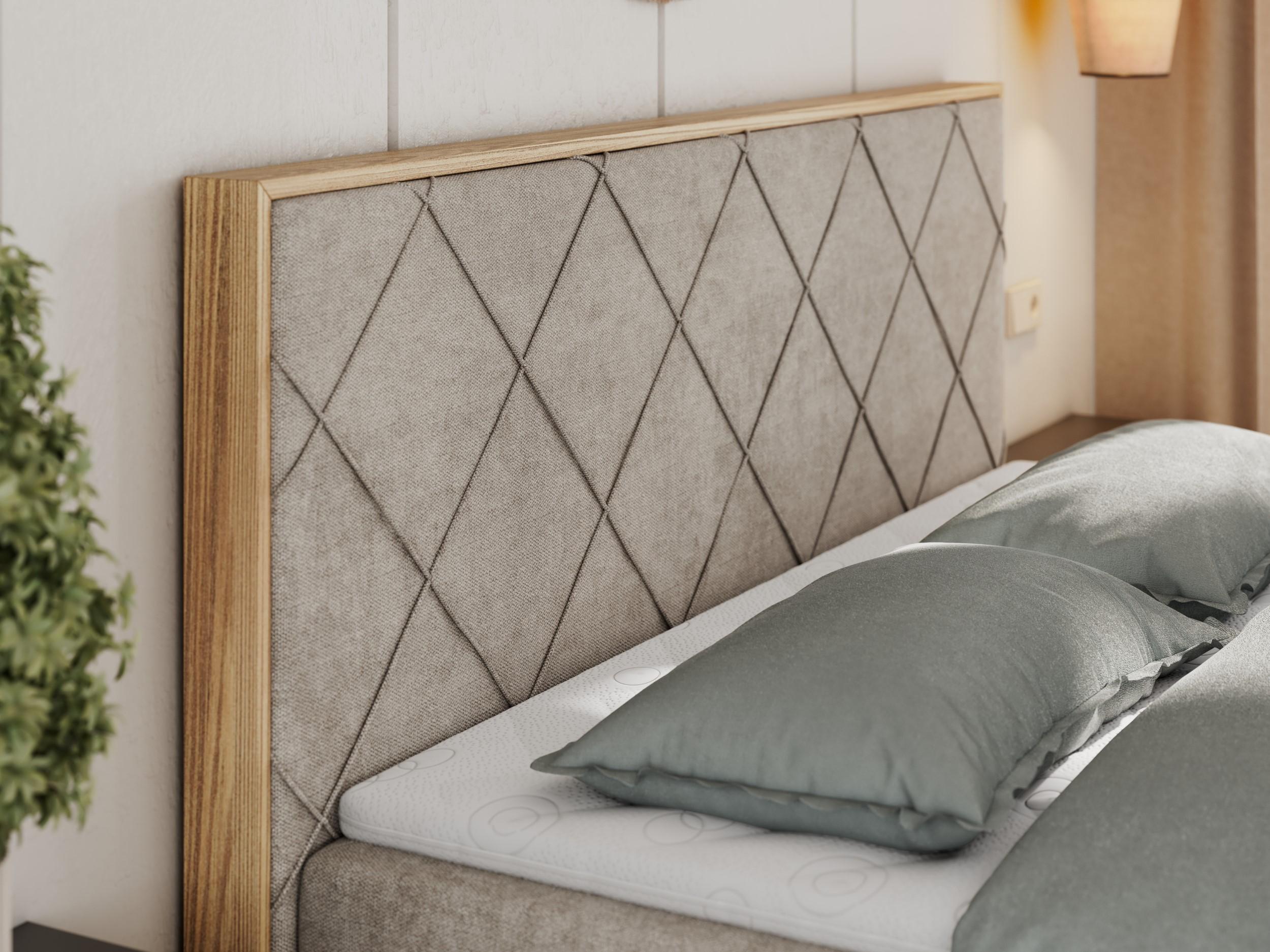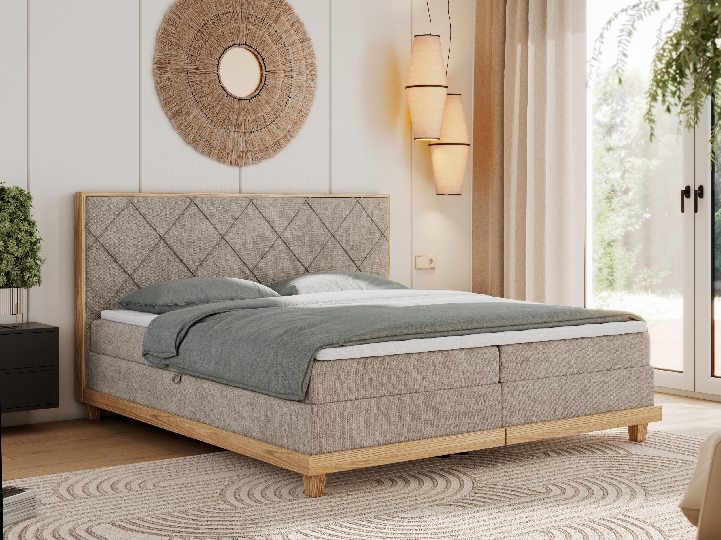 Boxspringbett CAICOS - mit gestepptem Kopfteil, Multipocket-Matratze und Topper, Holzelementen - 160x200 cm - H3 - Beige Strukture