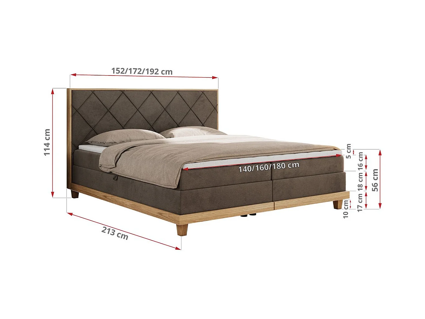 Boxspringbett CAICOS - mit gestepptem Kopfteil, Multipocket-Matratze und Topper, Holzelementen - 160x200 cm - H3 - Braun Velvet