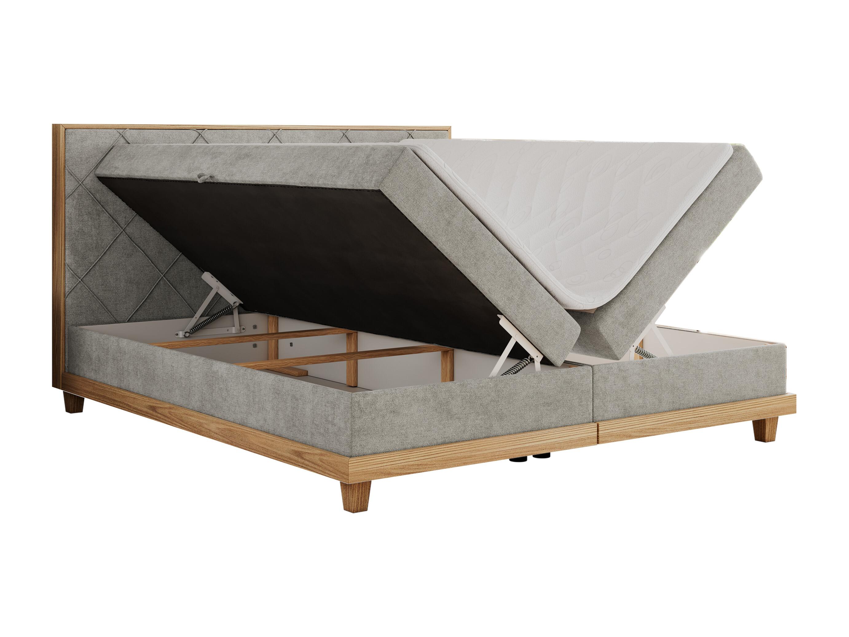 Boxspringbett CAICOS - mit gestepptem Kopfteil, Multipocket-Matratze und Topper, Holzelementen - 160x200 cm - H3 - Hellgrau Strukture