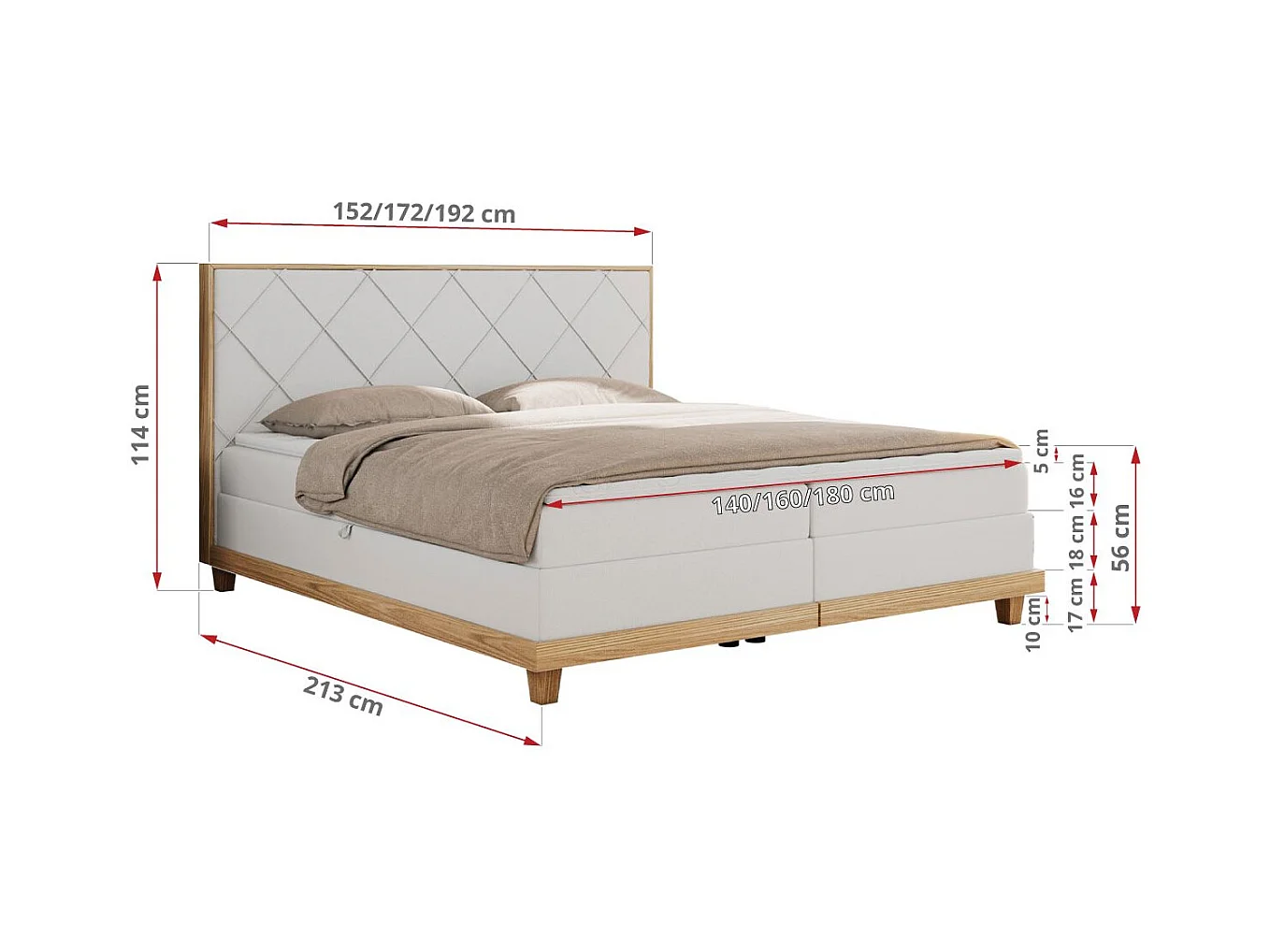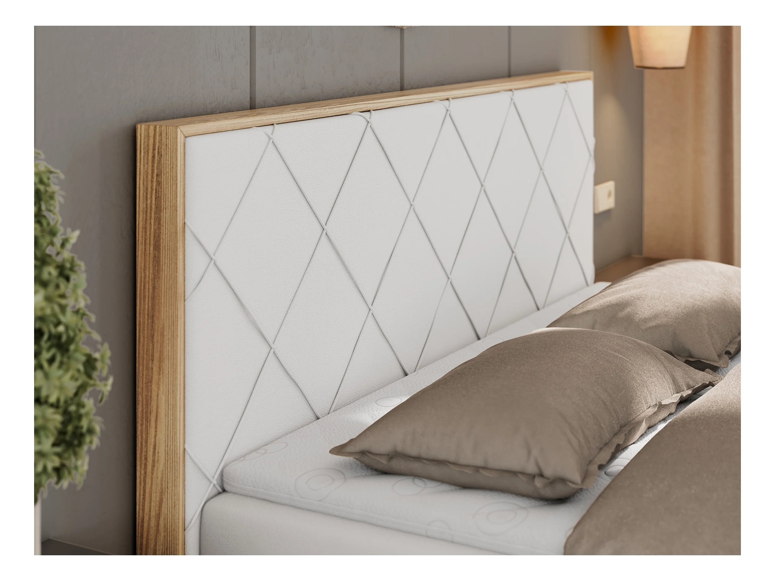 Boxspringbett CAICOS - mit gestepptem Kopfteil, Multipocket-Matratze und Topper, Holzelementen - 180x200 cm - H4 - Weiß Kunstleder