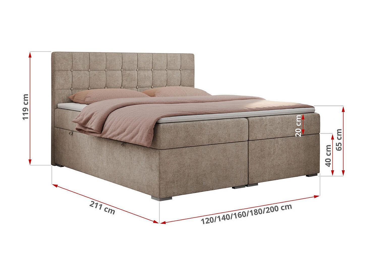 Boxspringbett CARMEN - Polsterbett mit zwei Bettkästen, gesteppte Kopfstütze, Multipocket-Matratze - 120x200 cm - H3 - Beige Stukture