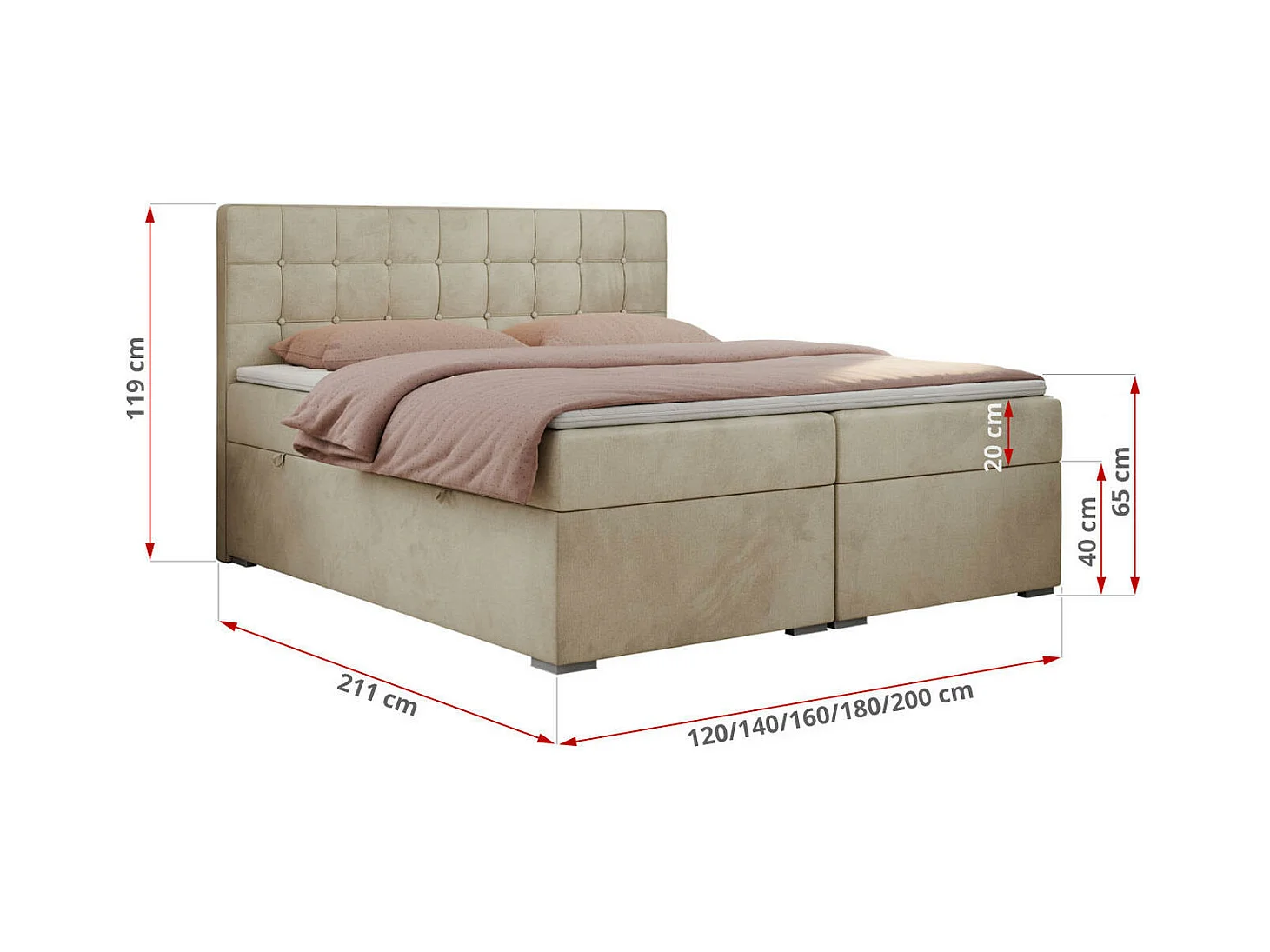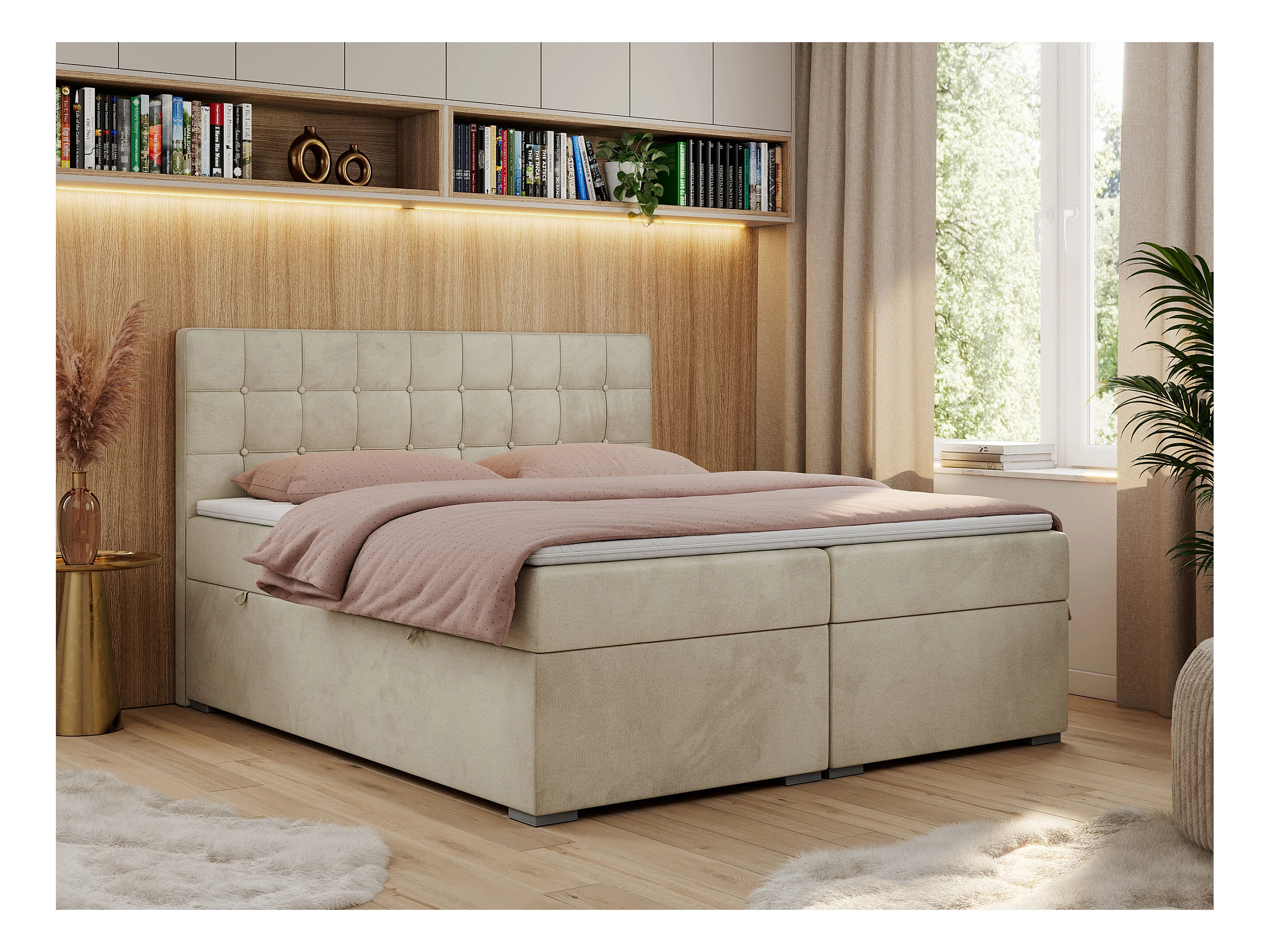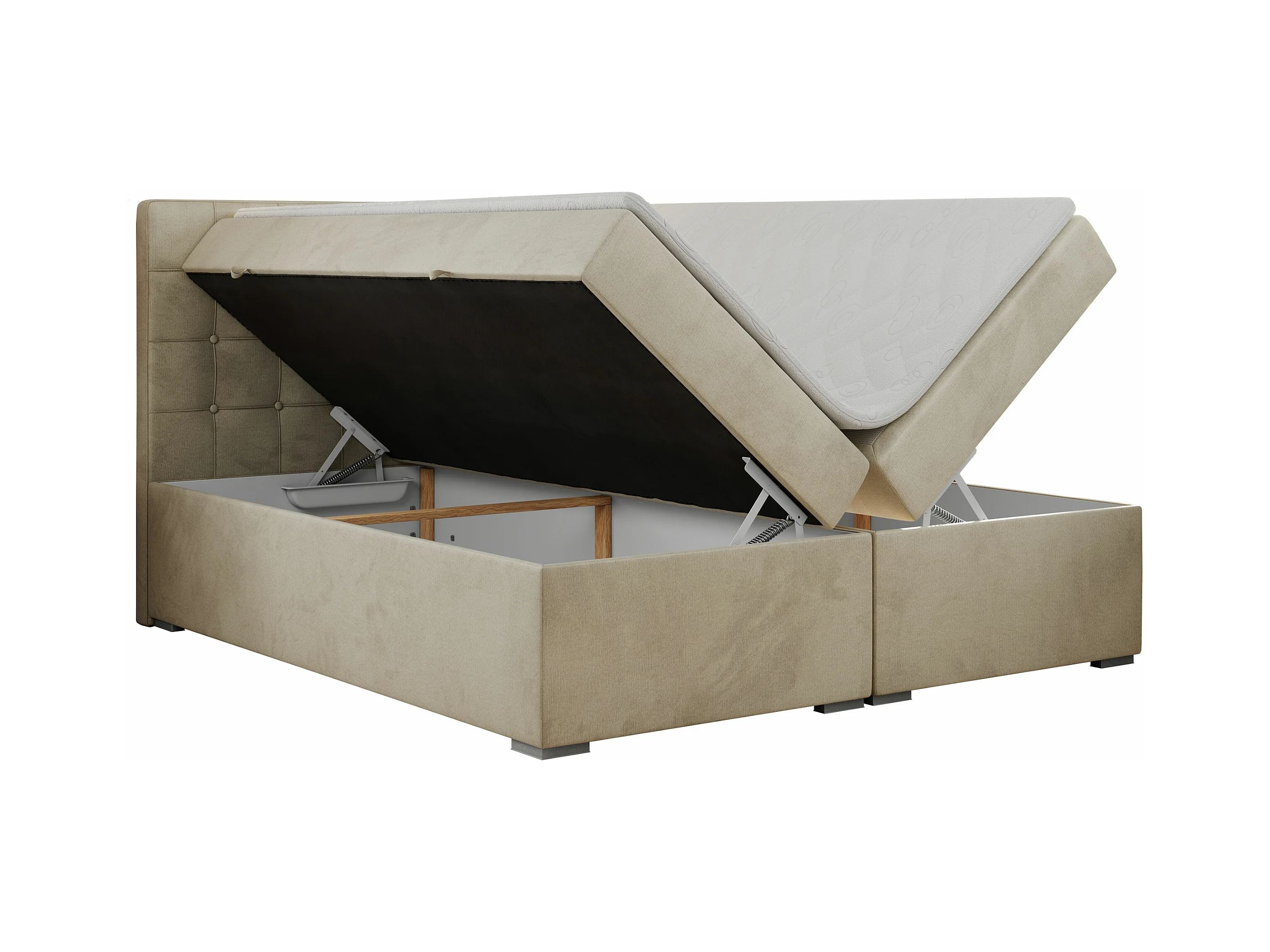 Boxspringbett CARMEN - Polsterbett mit zwei Bettkästen, gesteppte Kopfstütze, Multipocket-Matratze - 120x200 cm - H3 - Beige Velvet