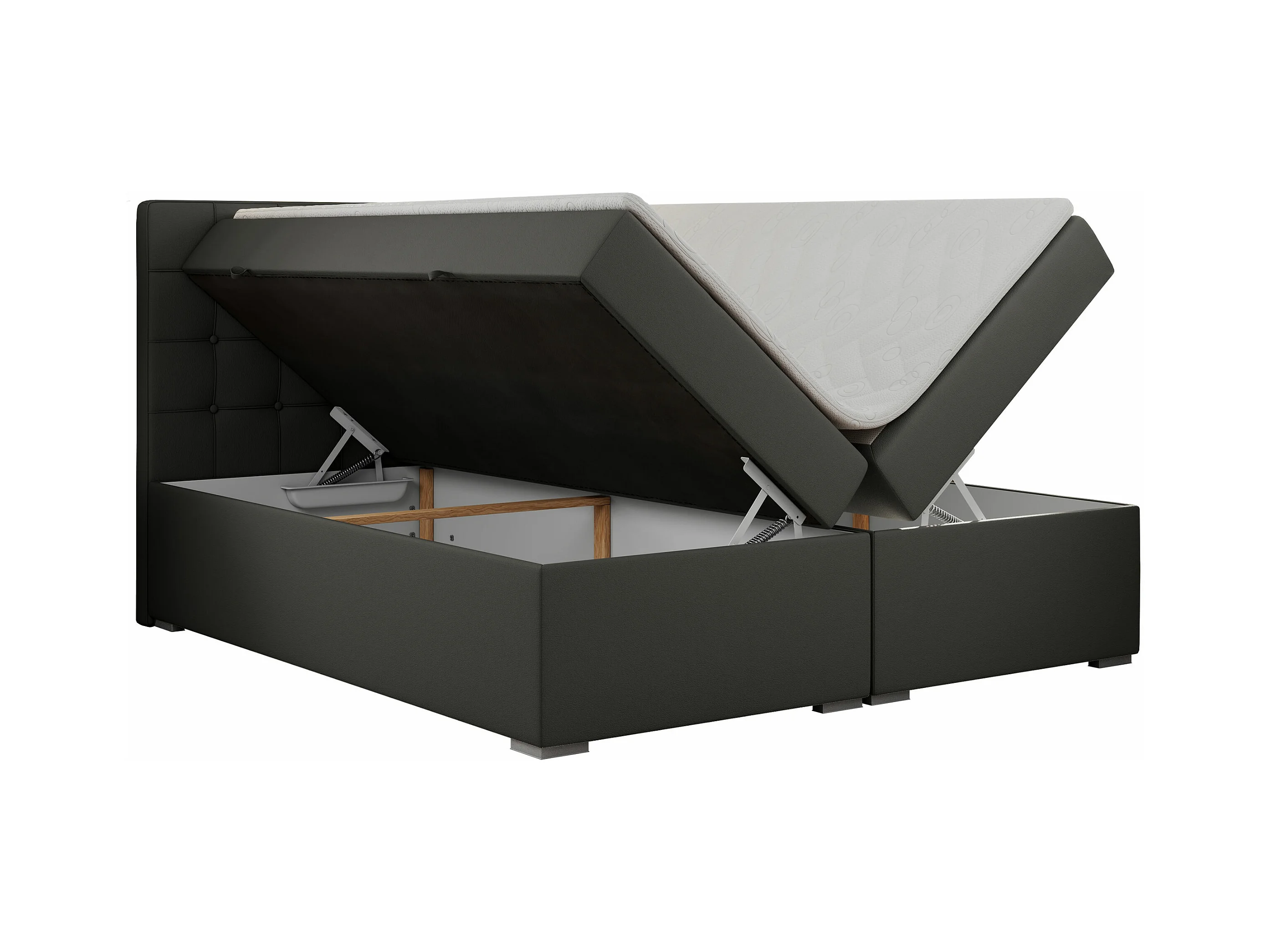 Boxspringbett CARMEN - Polsterbett mit zwei Bettkästen, gesteppte Kopfstütze, Multipocket-Matratze - 120x200 cm - H3 - Dunkelgrau Kunstleder