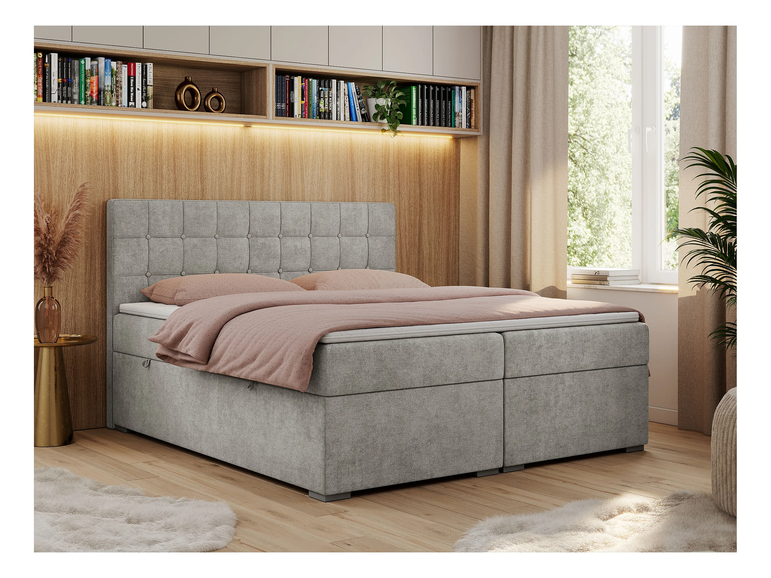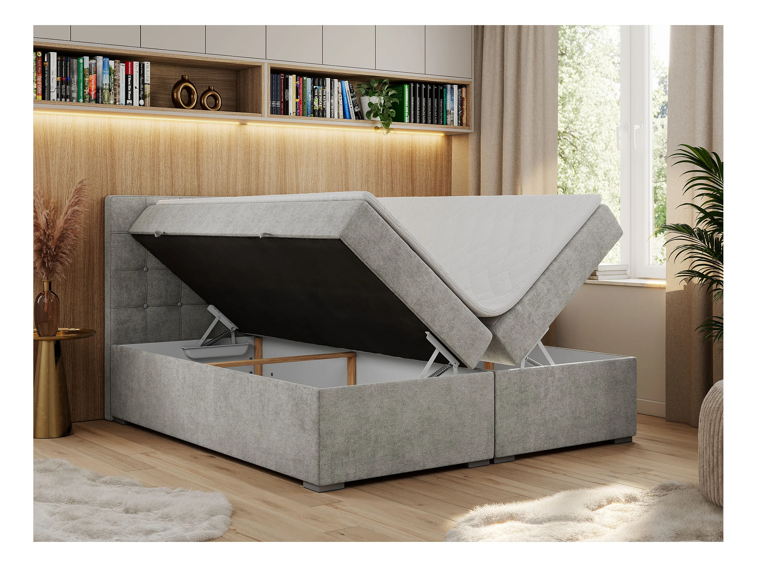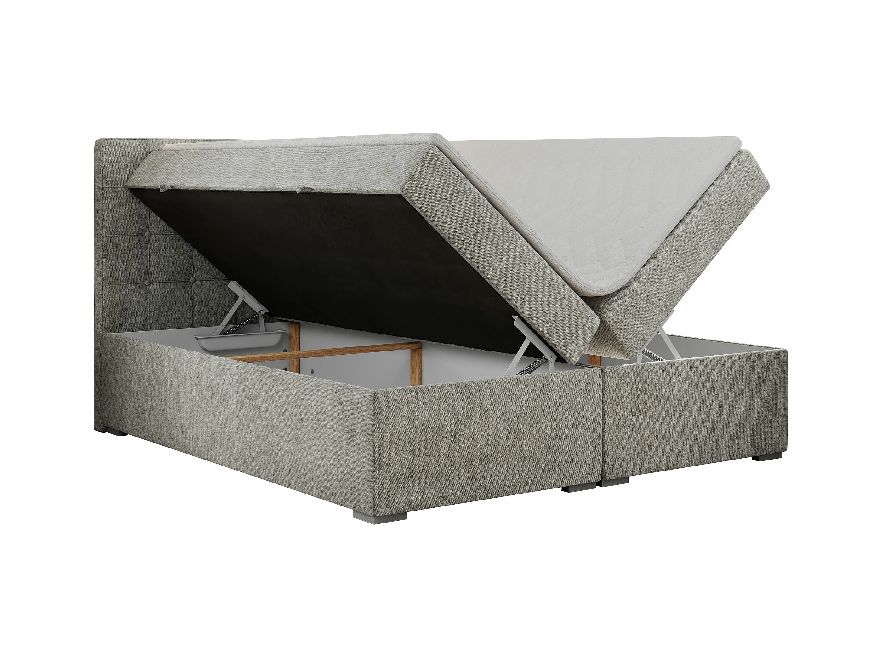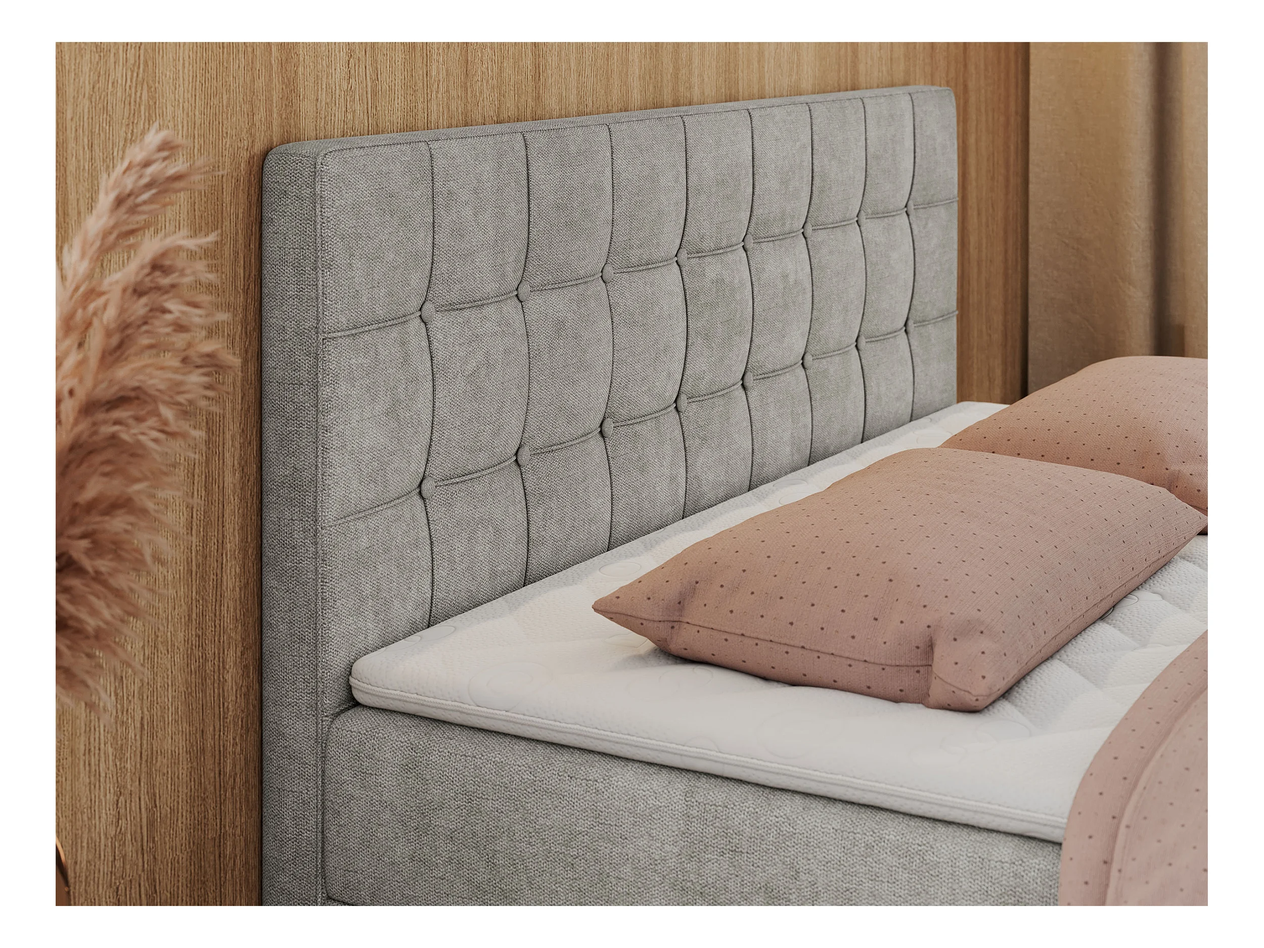 Boxspringbett CARMEN - Polsterbett mit zwei Bettkästen, gesteppte Kopfstütze, Multipocket-Matratze - 120x200 cm - H3 - Hellgrau Stukture