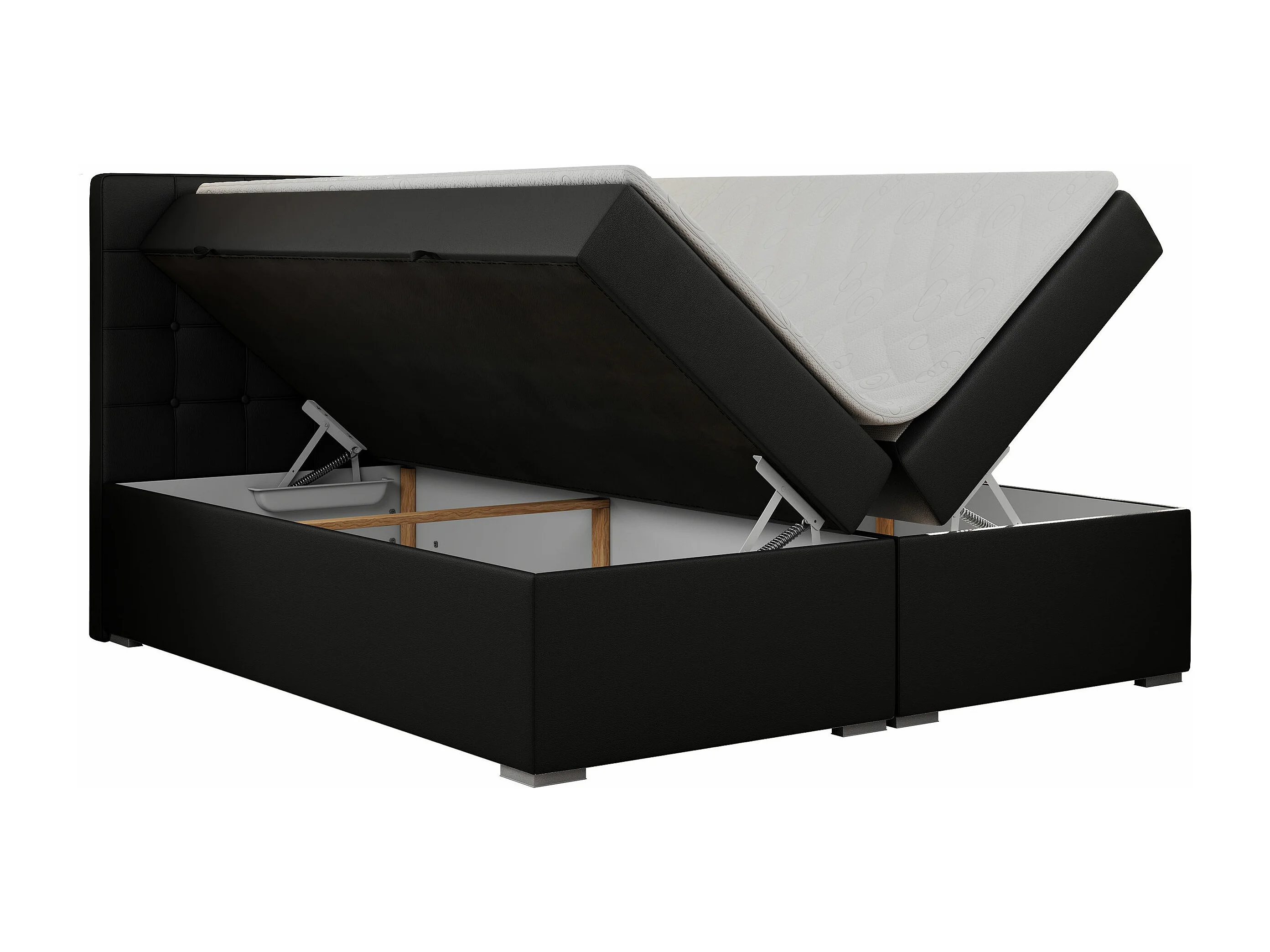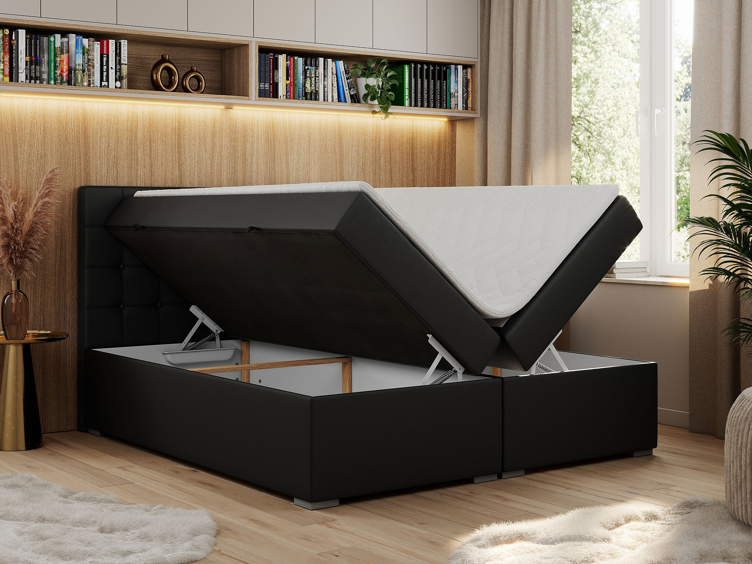 Boxspringbett CARMEN - Polsterbett mit zwei Bettkästen, gesteppte Kopfstütze, Multipocket-Matratze - 120x200 cm - H3 - Schwarz Kunstleder