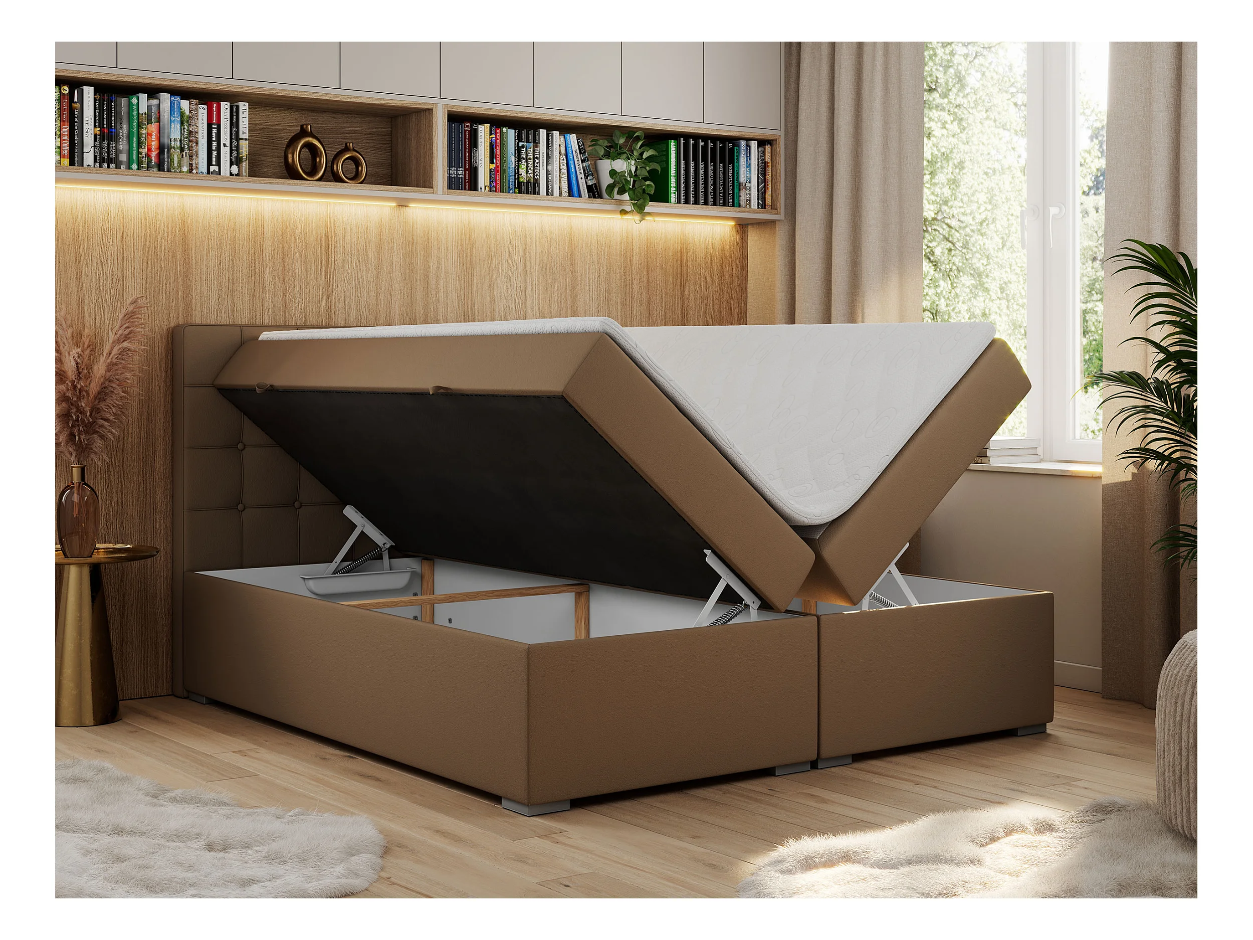 Boxspringbett CARMEN - Polsterbett mit zwei Bettkästen, gesteppte Kopfstütze, Multipocket-Matratze - 120x200 cm - H4 - Braun Kunstleder