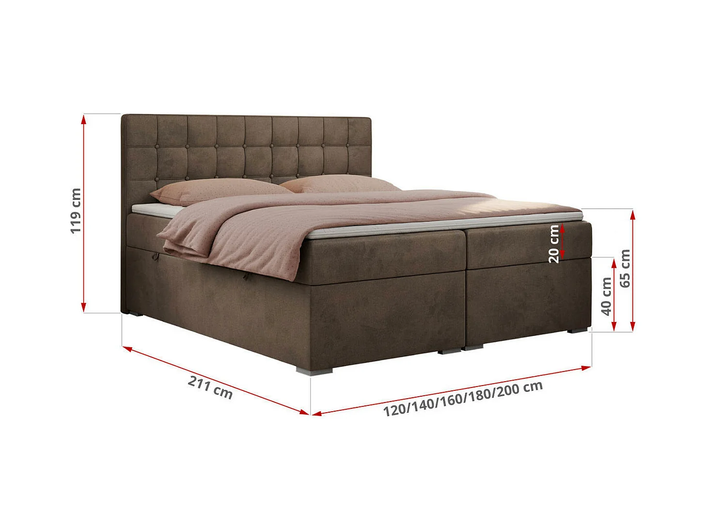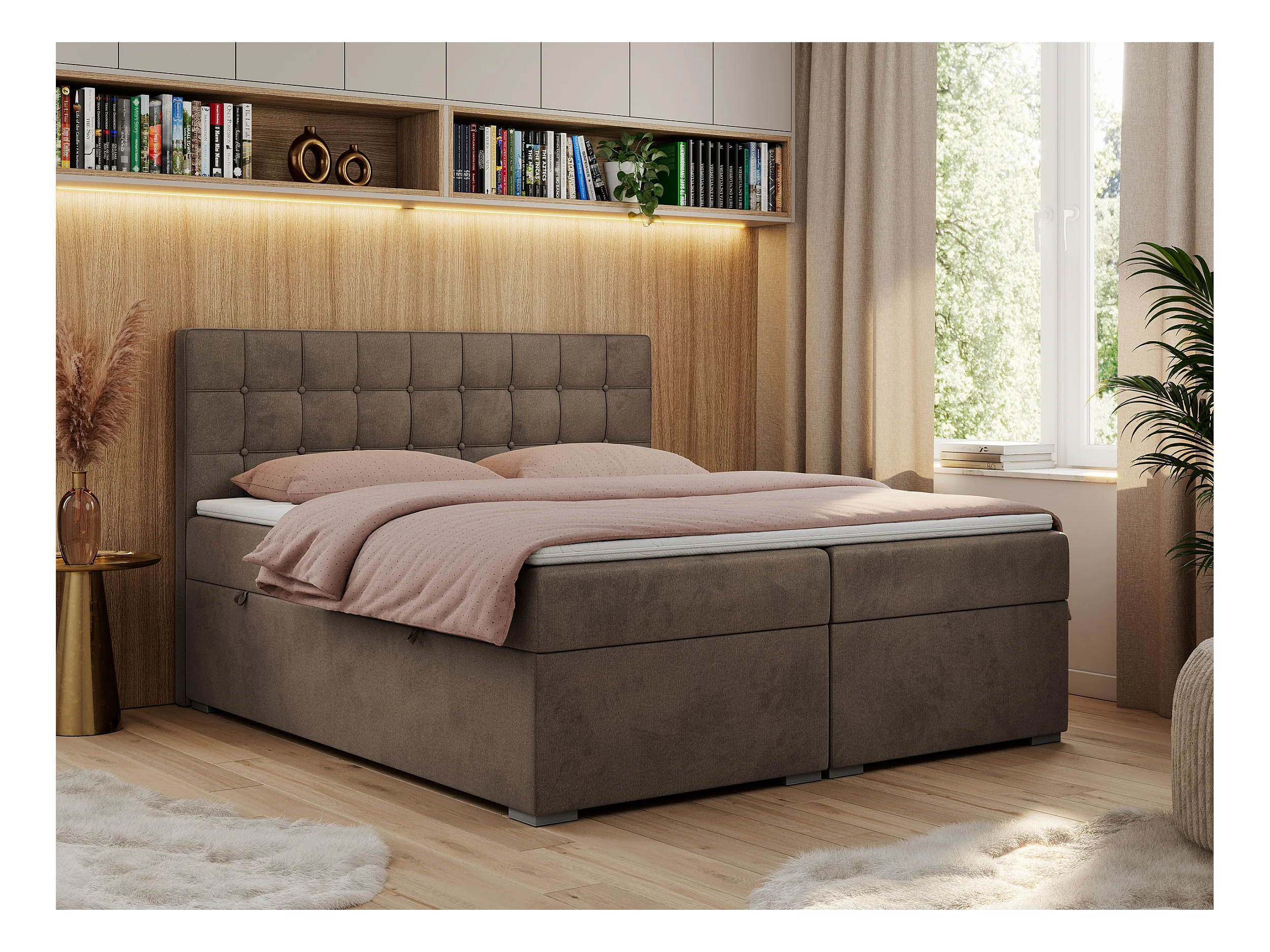 Boxspringbett CARMEN - Polsterbett mit zwei Bettkästen, gesteppte Kopfstütze, Multipocket-Matratze - 120x200 cm - H4 - Braun Velvet