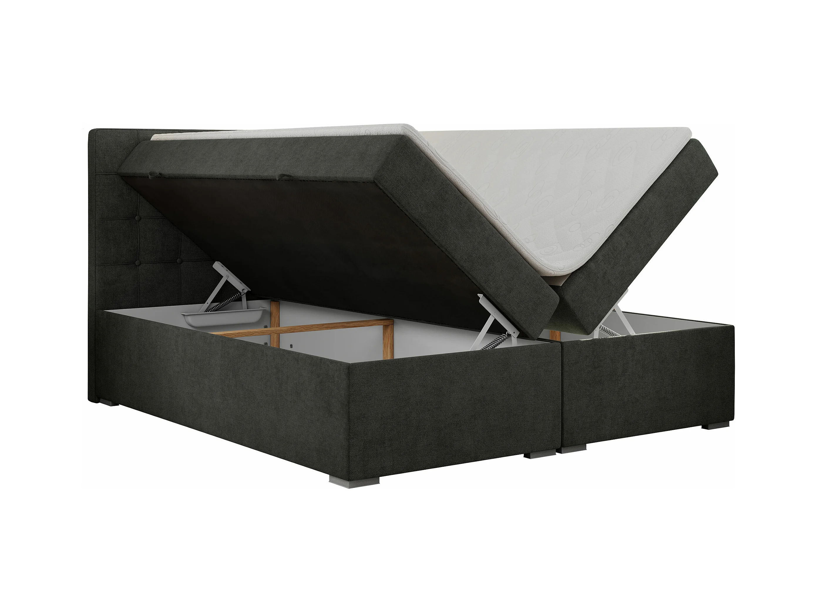 Boxspringbett CARMEN - Polsterbett mit zwei Bettkästen, gesteppte Kopfstütze, Multipocket-Matratze - 120x200 cm - H4 - Dunkelgrau Stukture