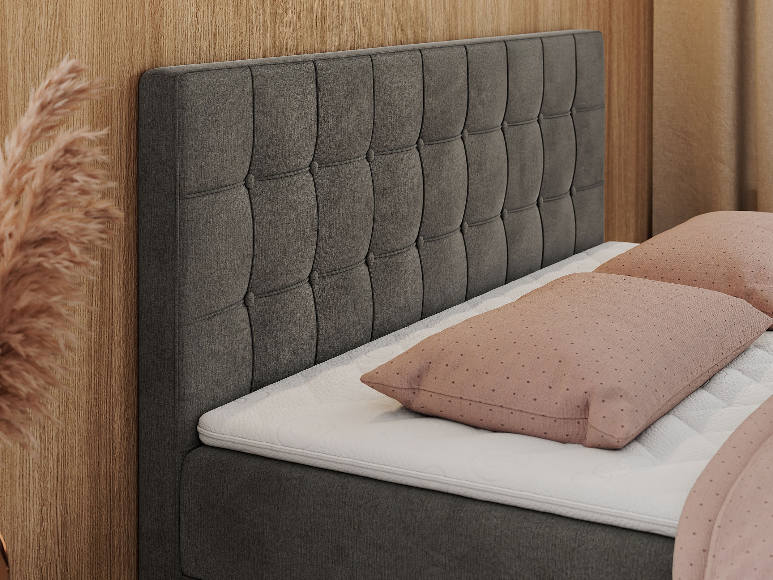 Boxspringbett CARMEN - Polsterbett mit zwei Bettkästen, gesteppte Kopfstütze, Multipocket-Matratze - 160x200 cm - H3 - Dunkelgrau Velvet