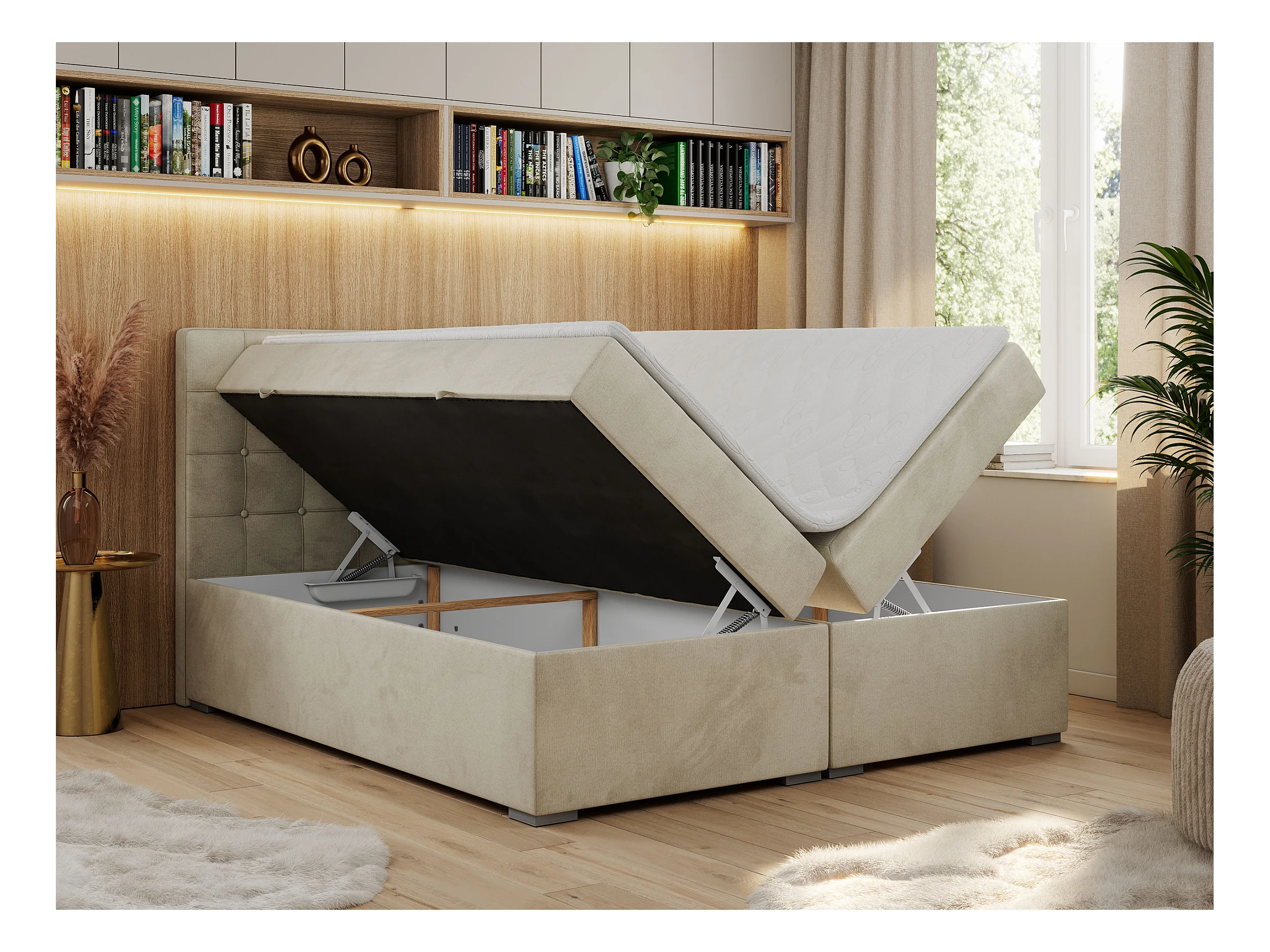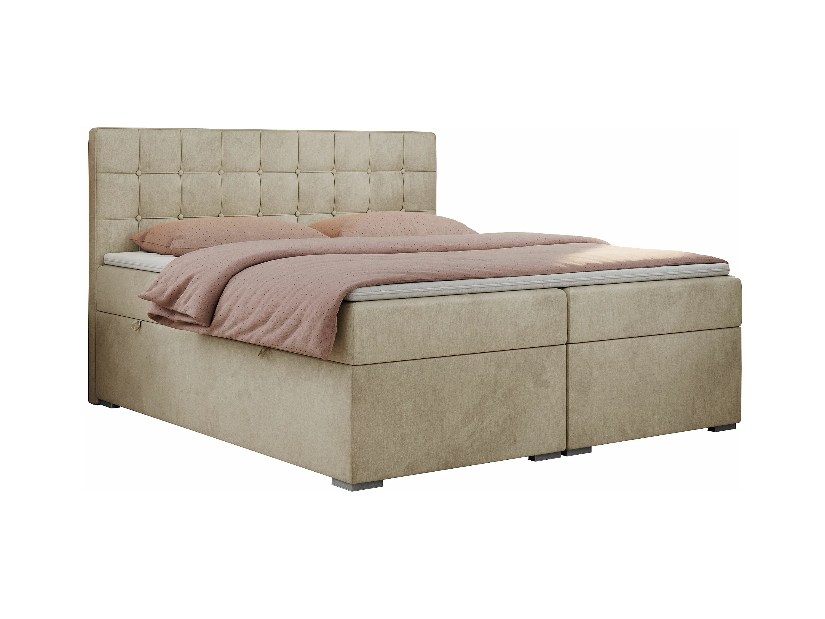 Boxspringbett CARMEN - Polsterbett mit zwei Bettkästen, gesteppte Kopfstütze, Multipocket-Matratze - 160x200 cm - H4 - Beige Velvet