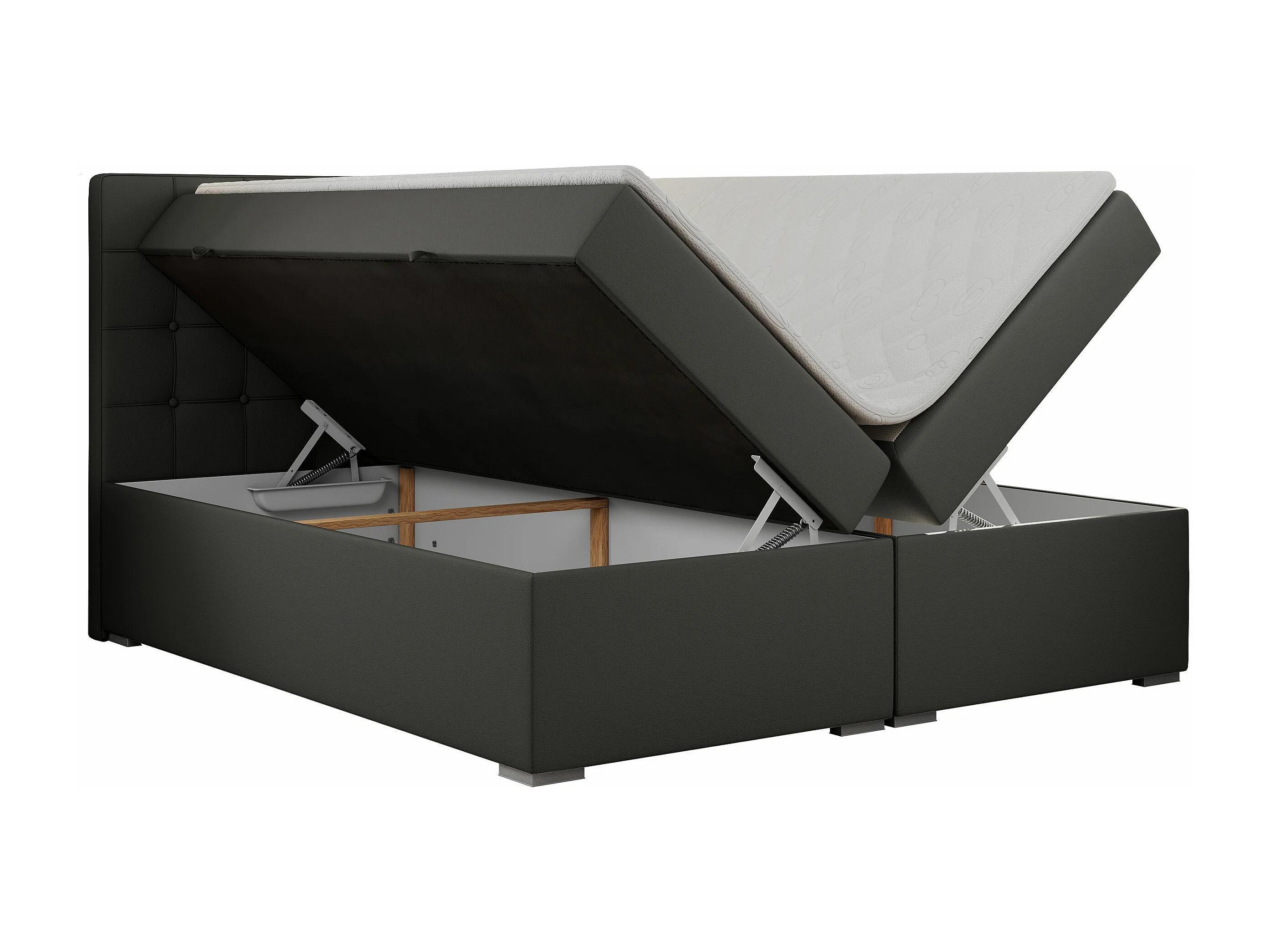 Boxspringbett CARMEN - Polsterbett mit zwei Bettkästen, gesteppte Kopfstütze, Multipocket-Matratze - 160x200 cm - H4 - Dunkelgrau Kunstleder