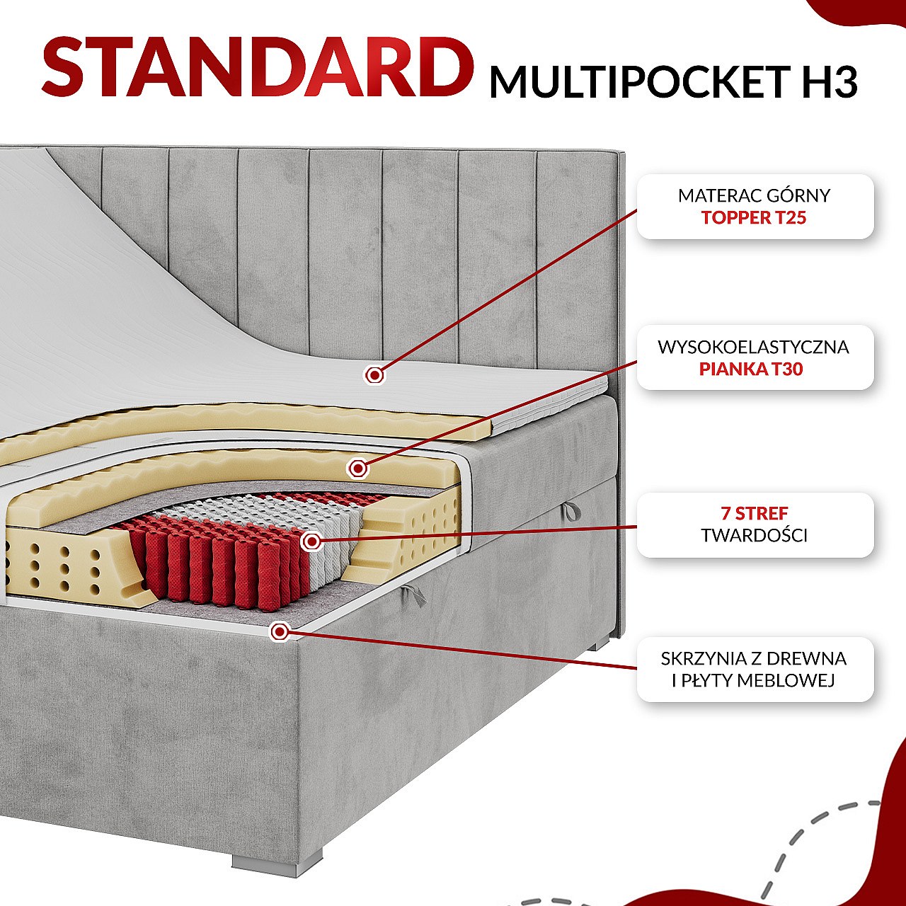 Boxspringbett CARMEN - Polsterbett mit zwei Bettkästen, gesteppte Kopfstütze, Multipocket-Matratze - 180x200 cm - H3 - Beige Velvet