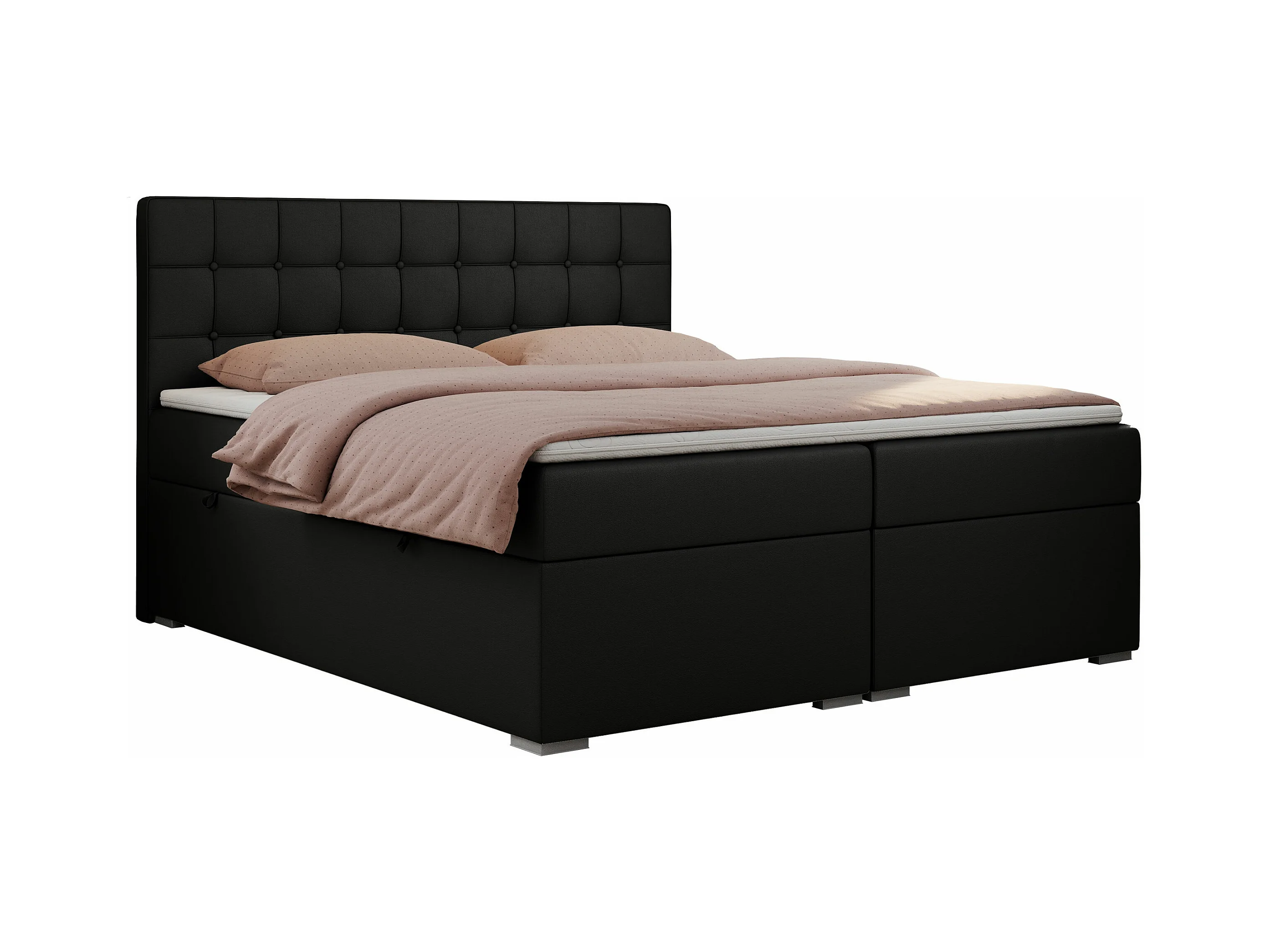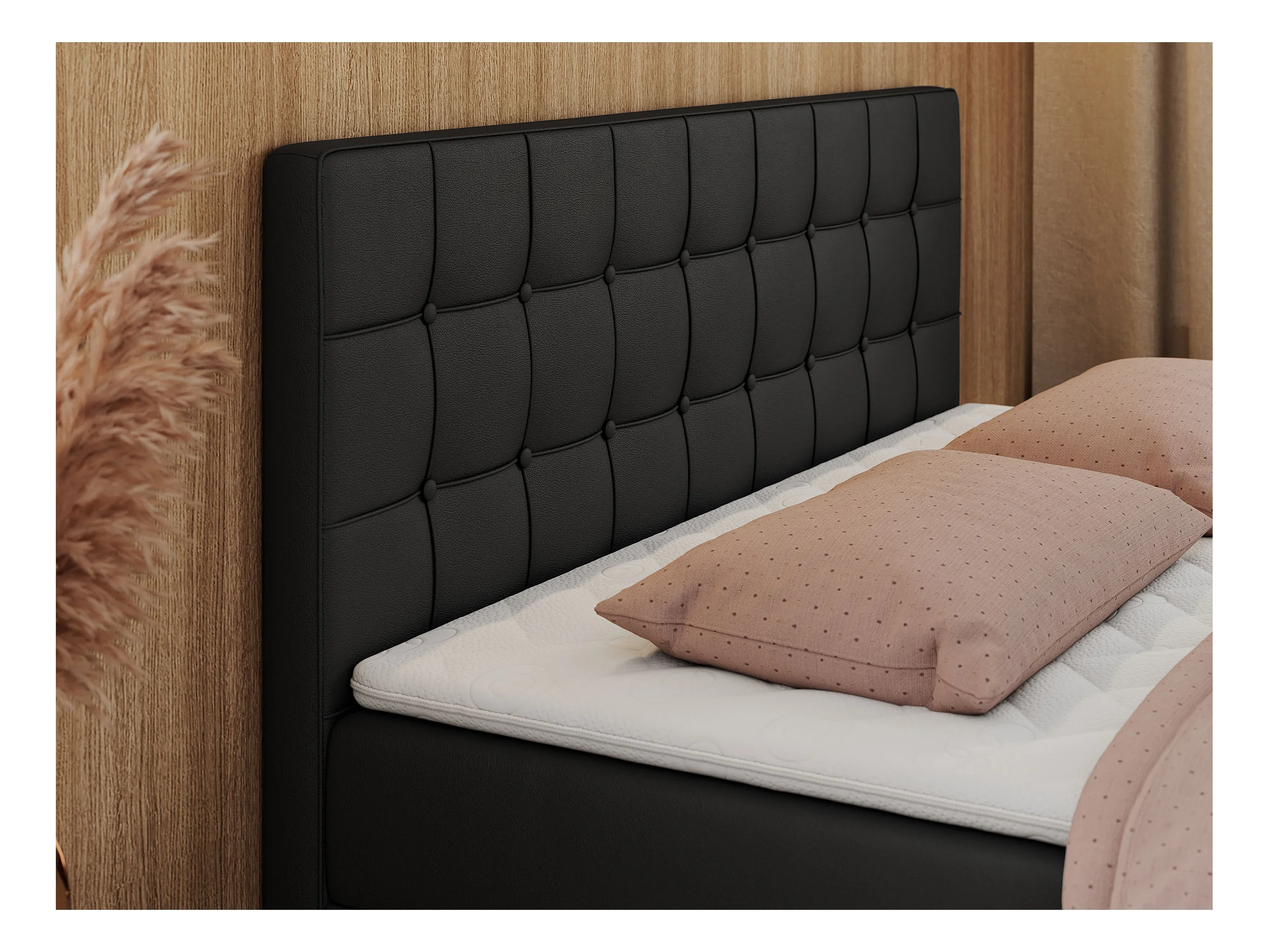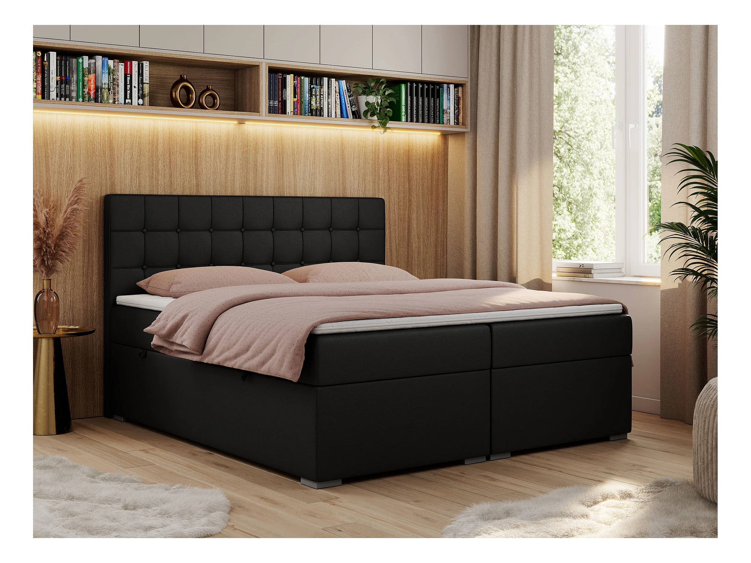 Boxspringbett CARMEN - Polsterbett mit zwei Bettkästen, gesteppte Kopfstütze, Multipocket-Matratze - 180x200 cm - H3 - Schwarz Kunstleder