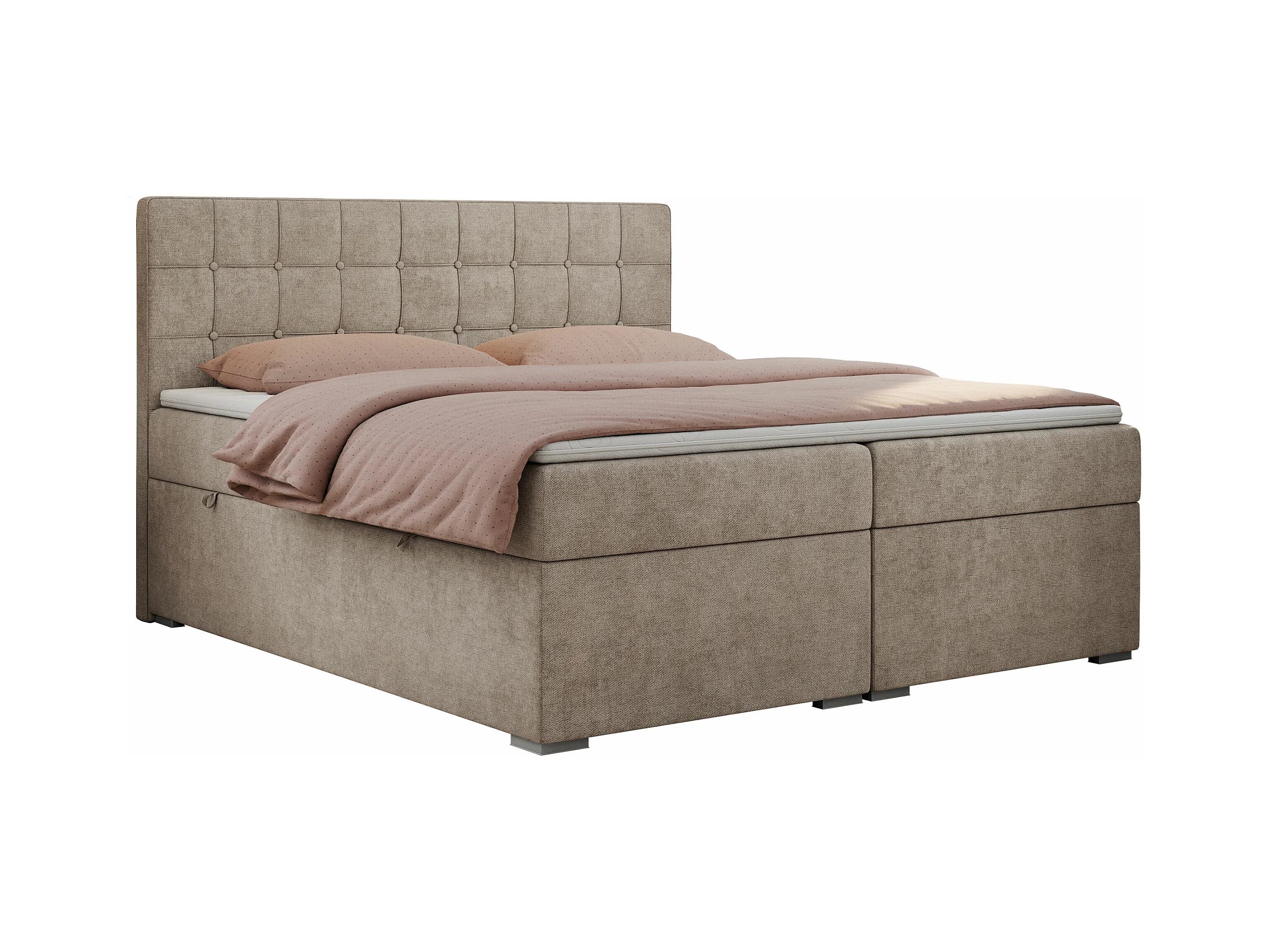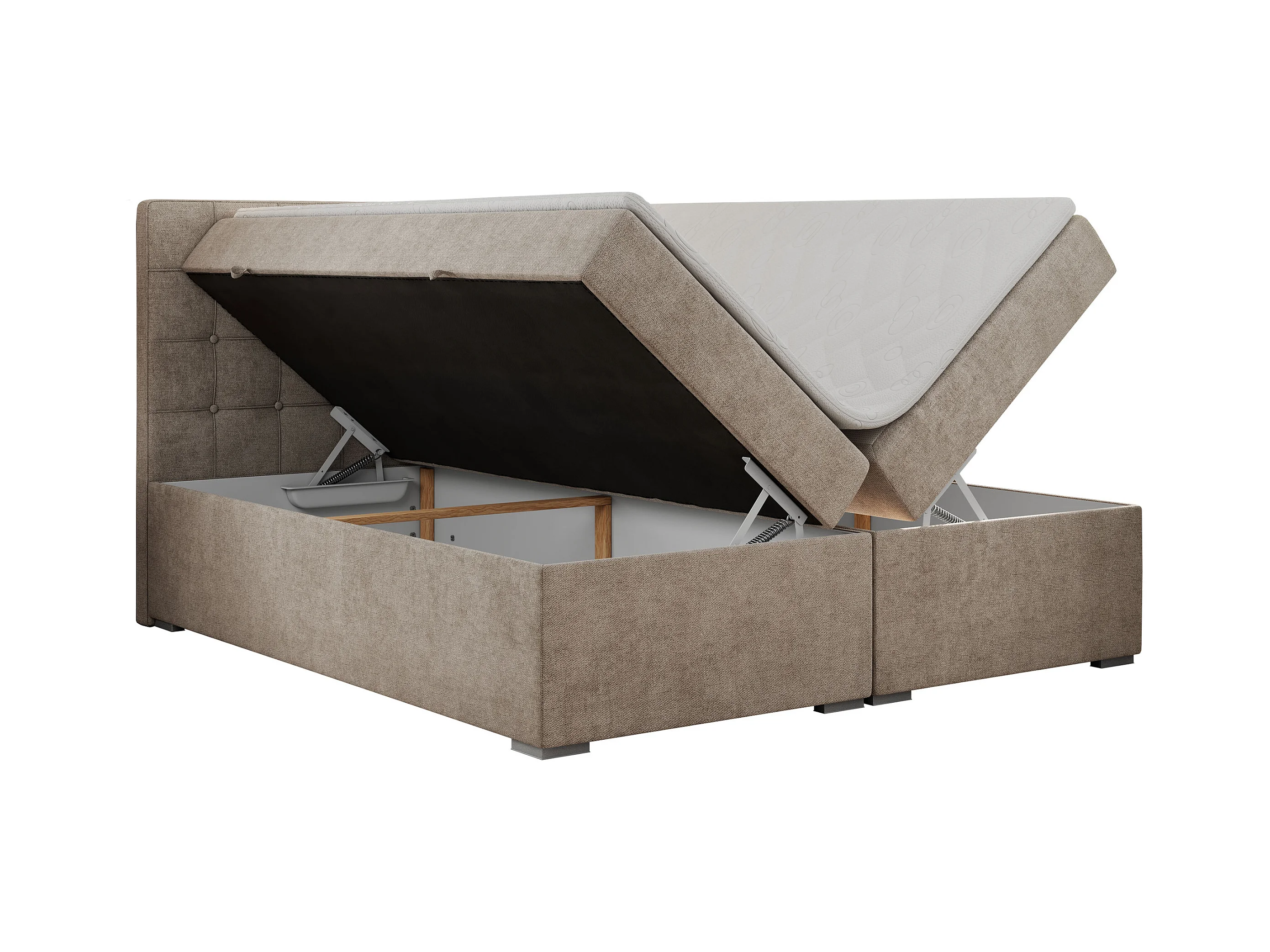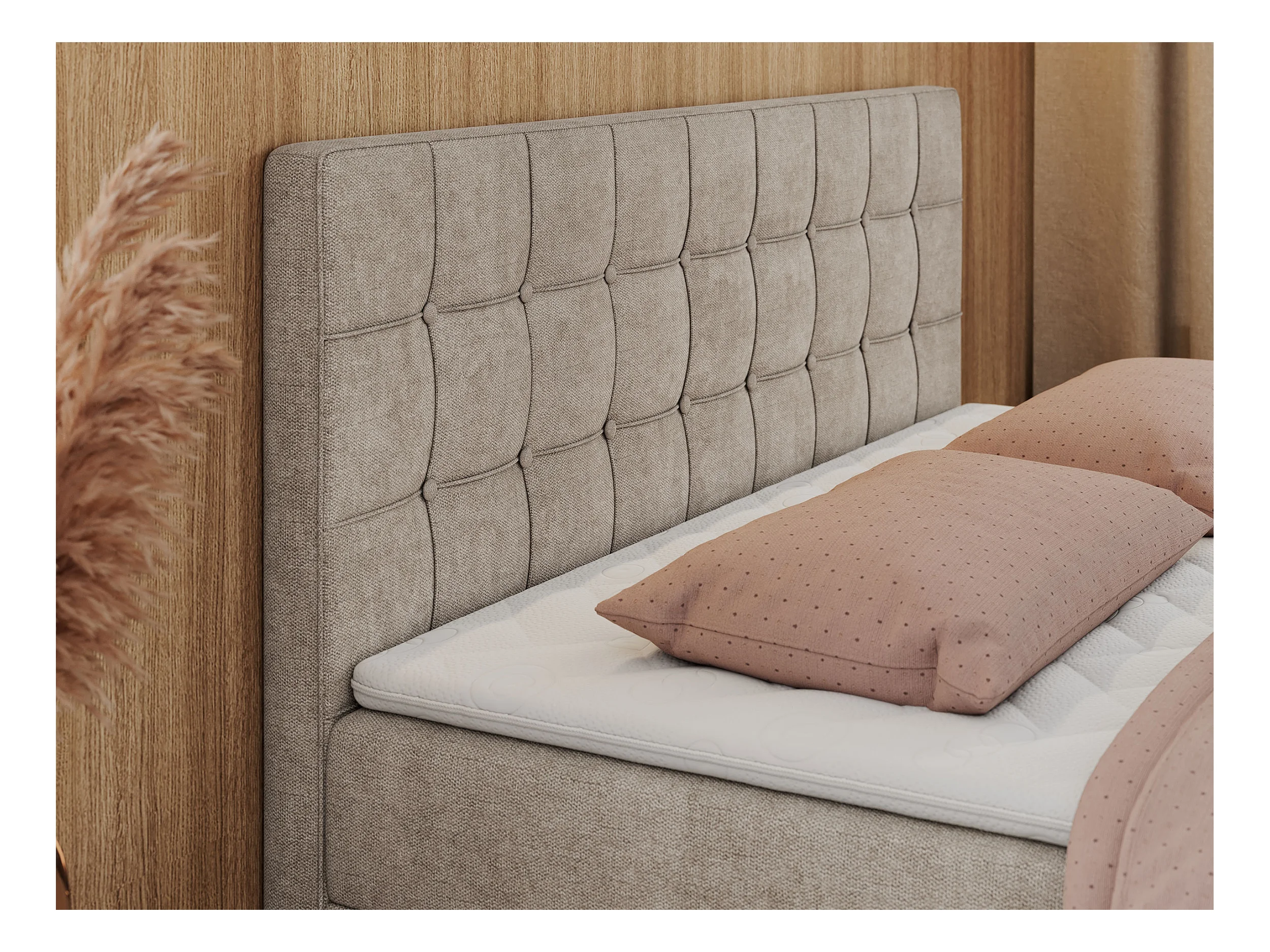 Boxspringbett CARMEN - Polsterbett mit zwei Bettkästen, gesteppte Kopfstütze, Multipocket-Matratze - 180x200 cm - H4 - Beige Stukture