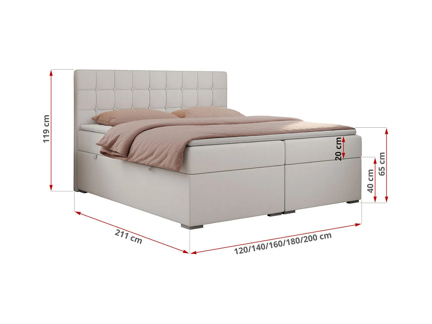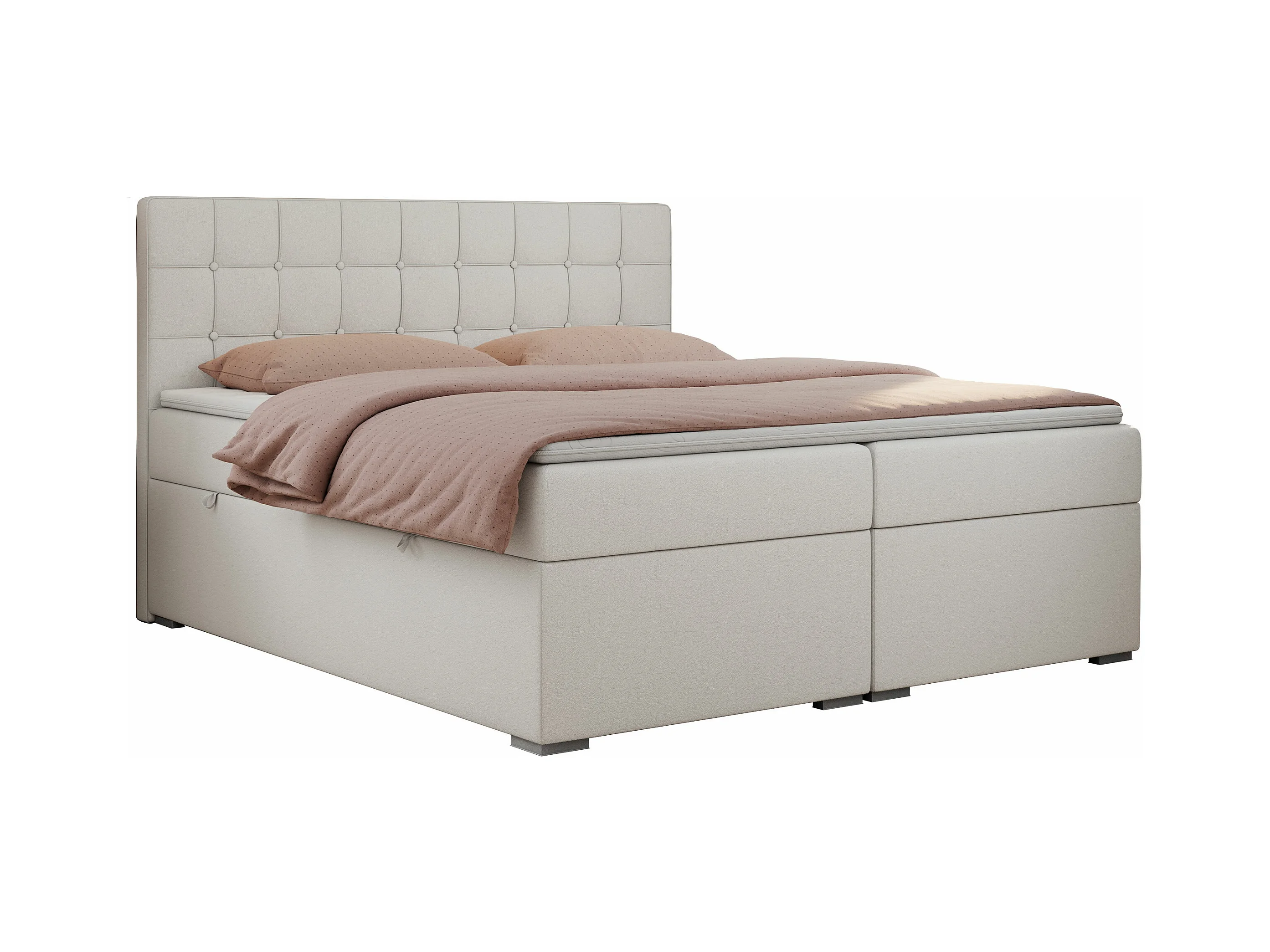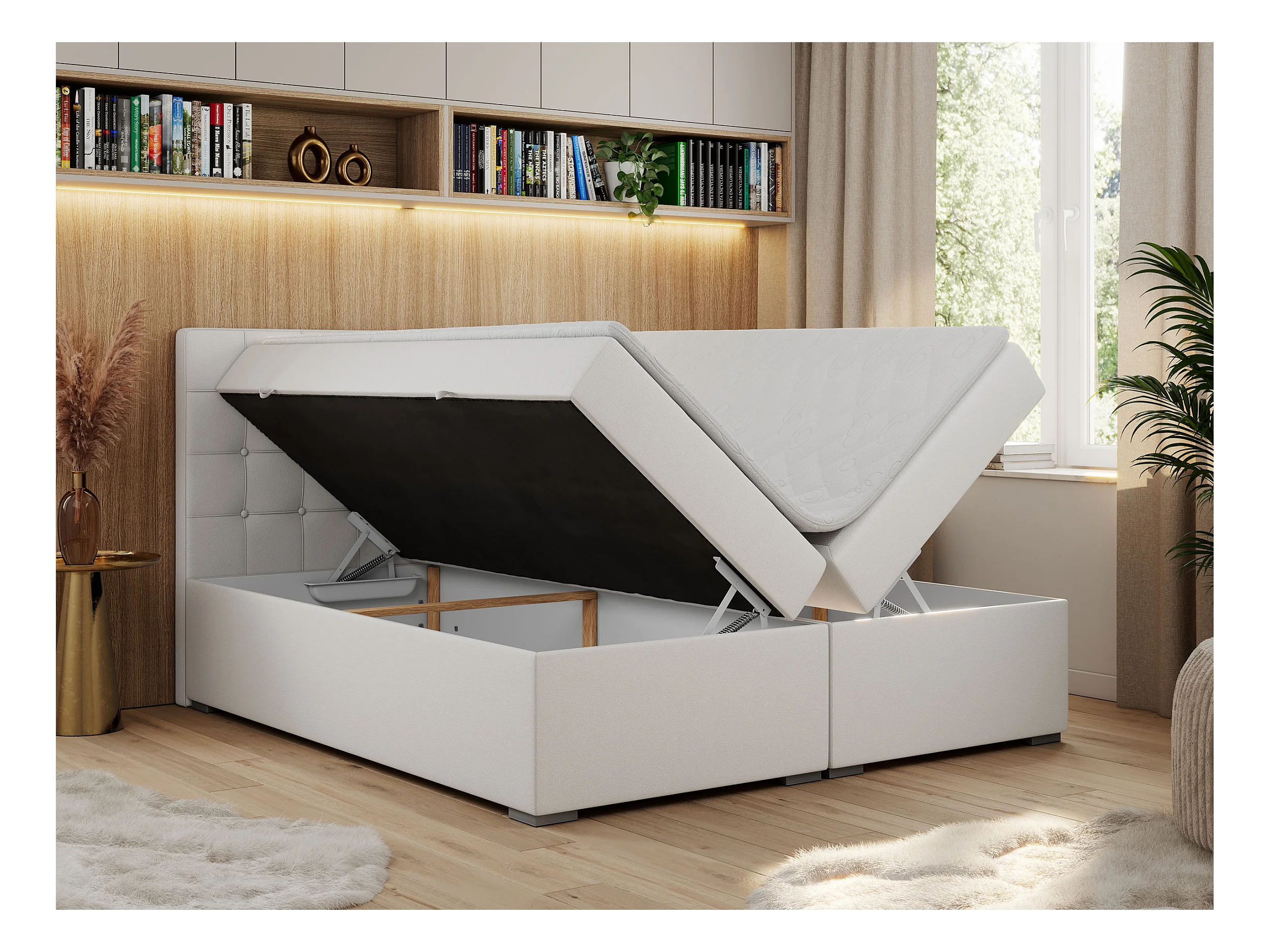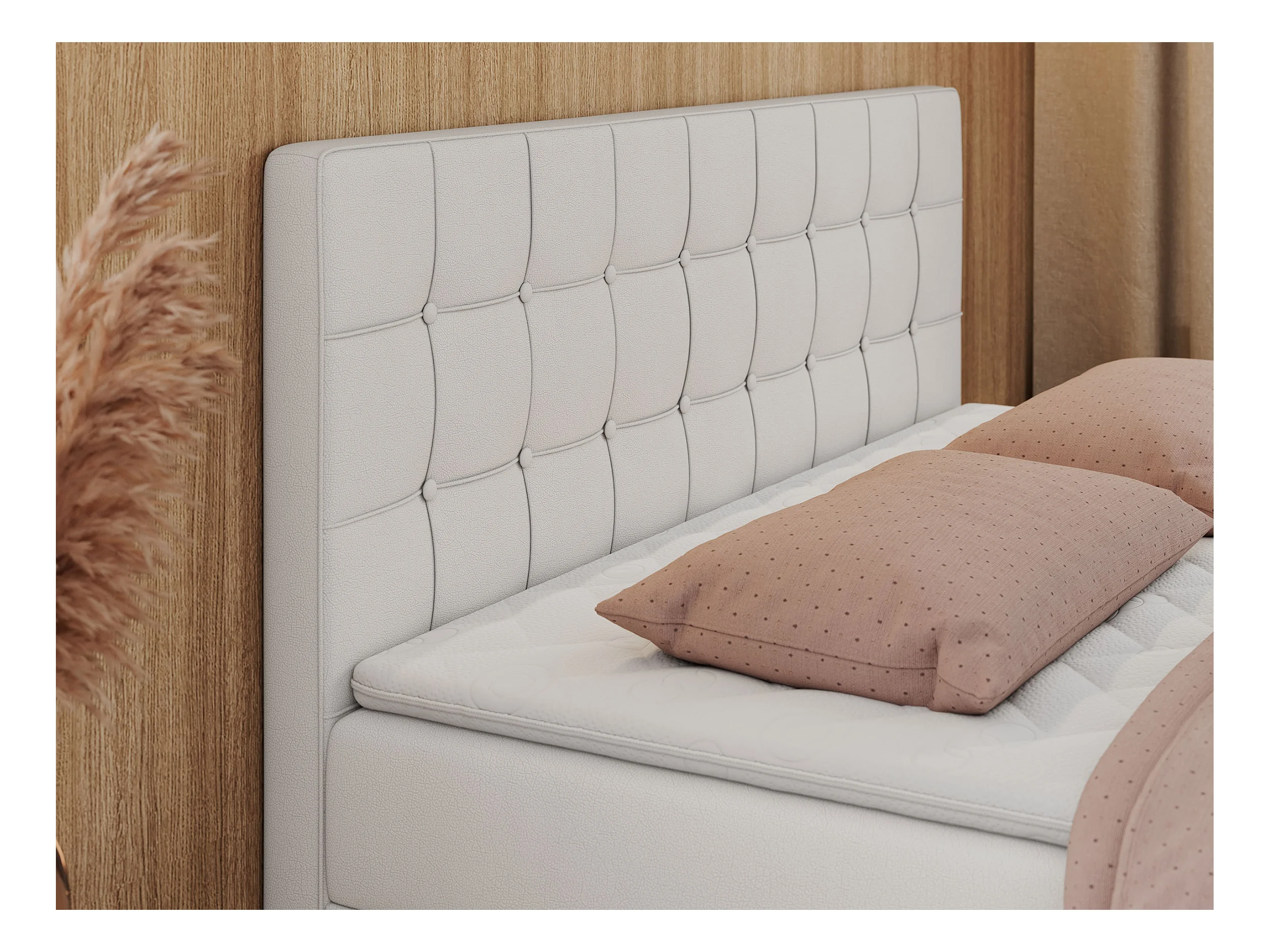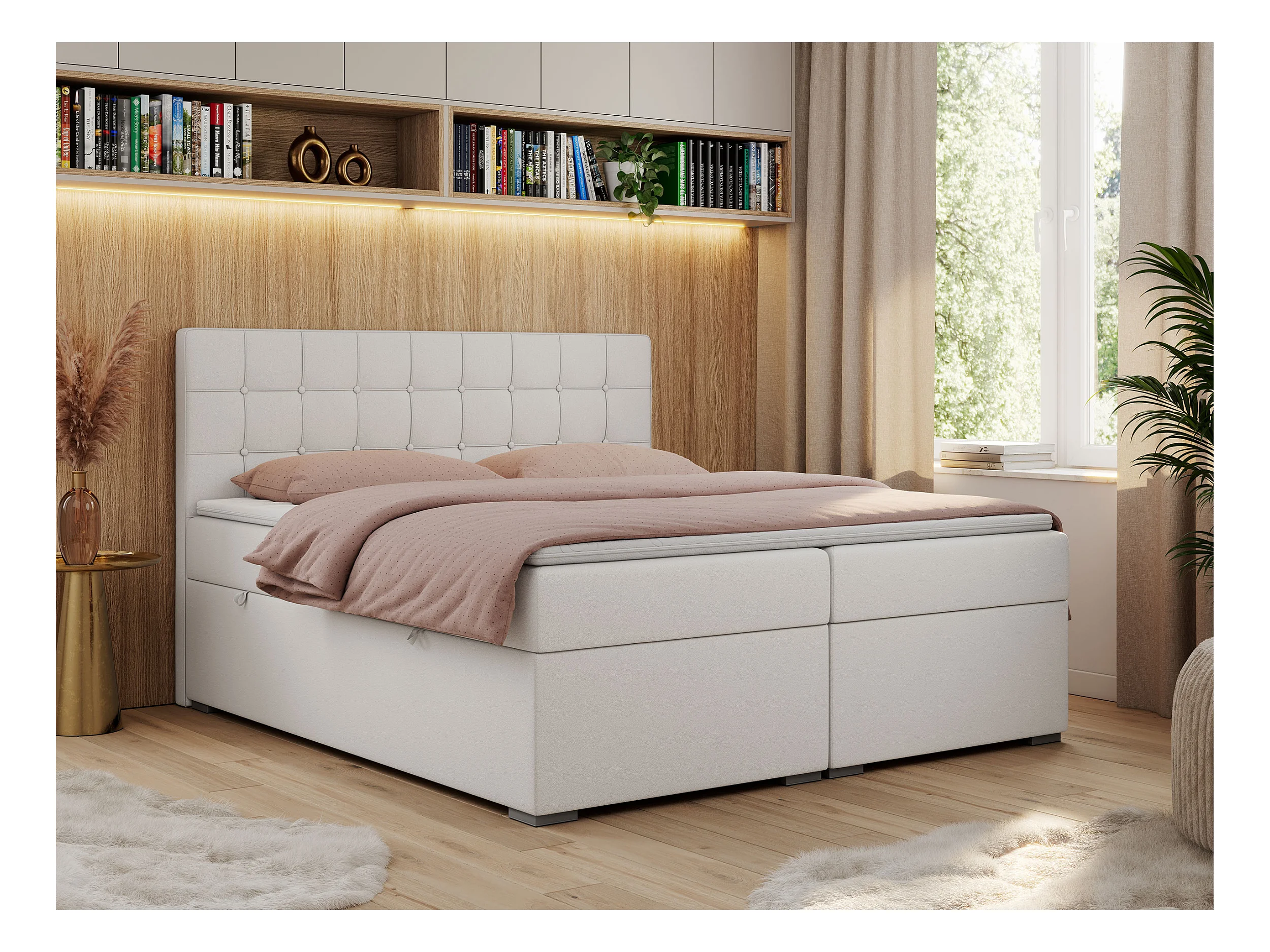 Boxspringbett CARMEN - Polsterbett mit zwei Bettkästen, gesteppte Kopfstütze, Multipocket-Matratze - 200x200 cm - H4 - Weiß Kunstleder