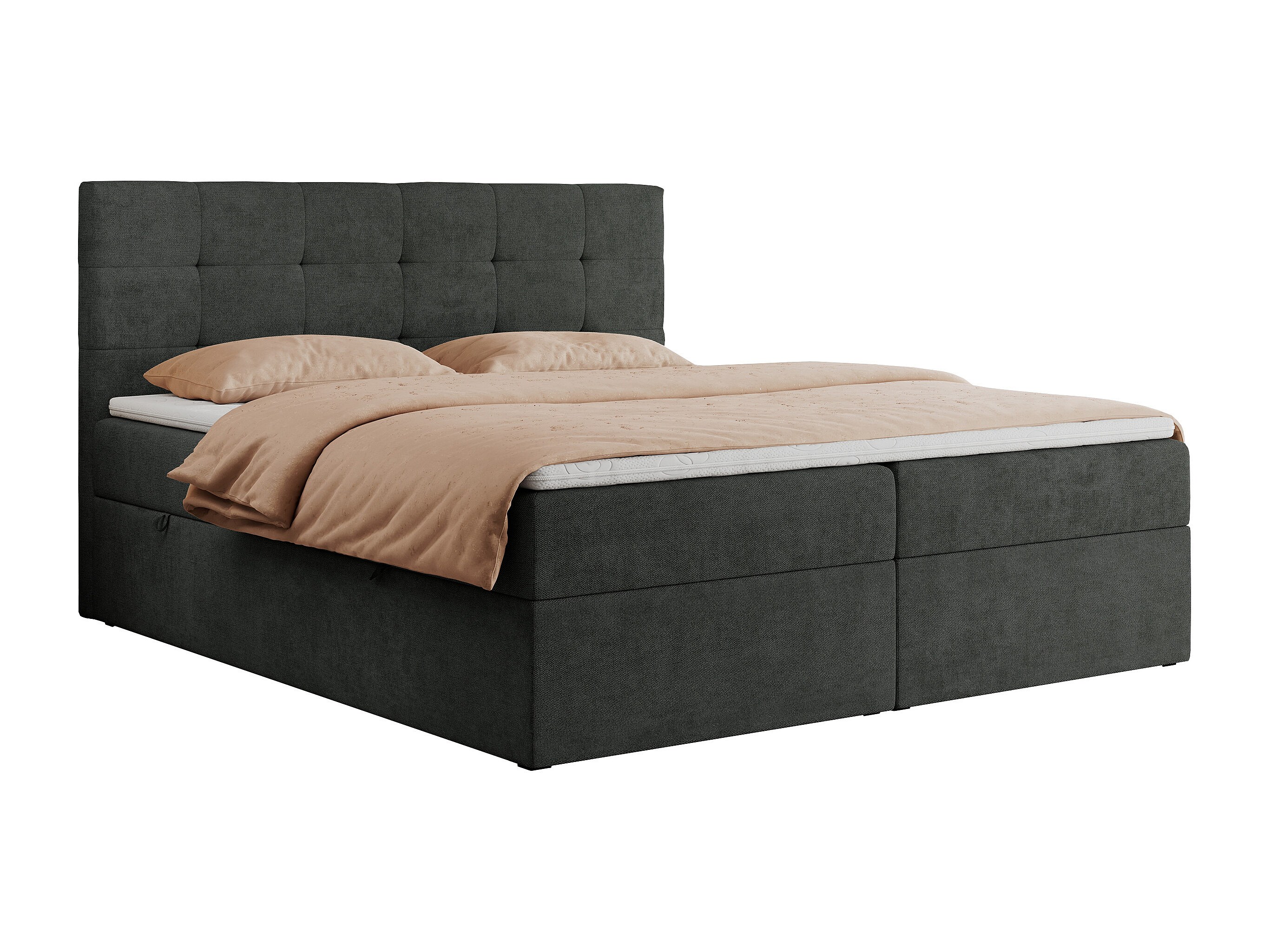 Boxspringbett CENTOS mit gestepptem Kopfteil, Multipocket-Matratze, Doppelbett mit Stauraum - 120x200 cm - H4 - Dunkelgrau Struktur
