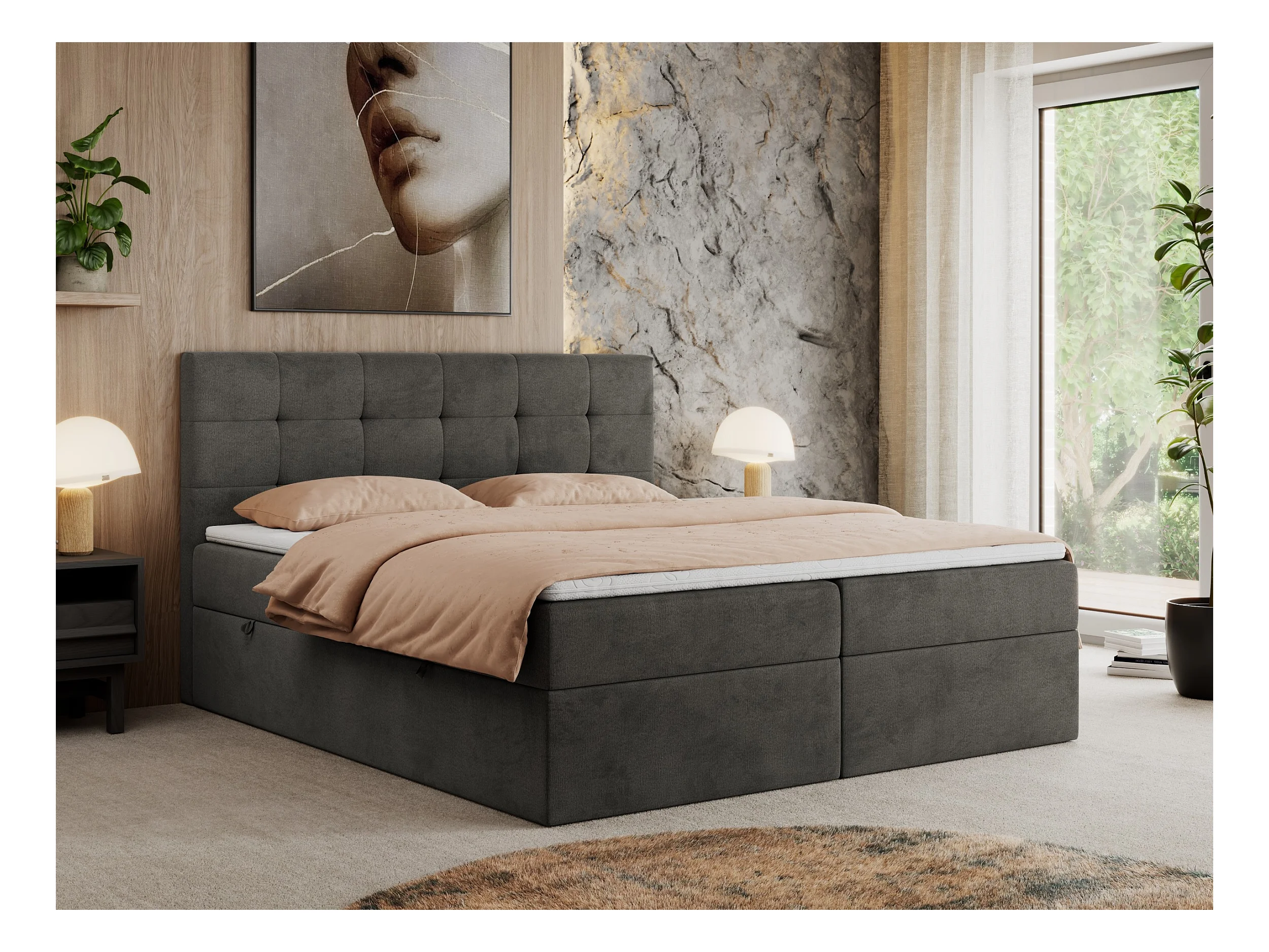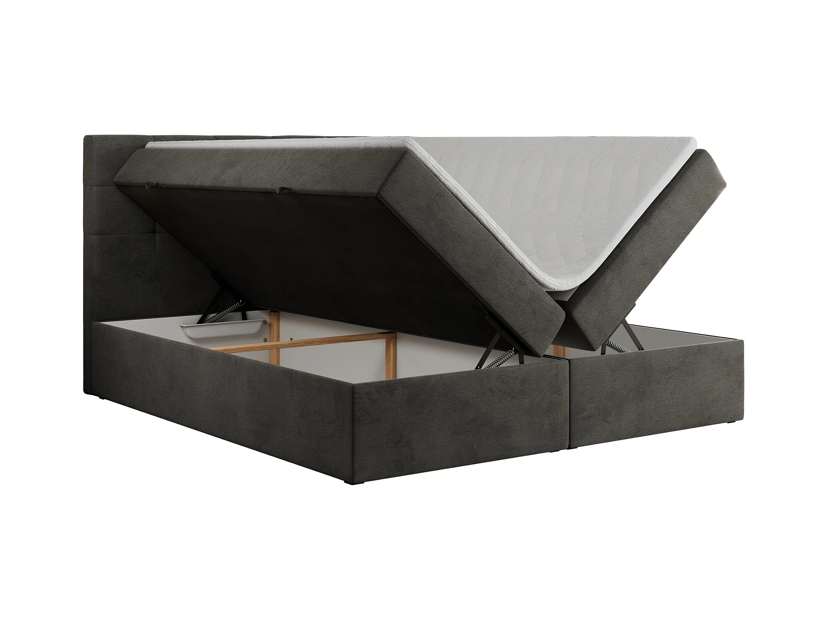 Boxspringbett CENTOS mit gestepptem Kopfteil, Multipocket-Matratze, Doppelbett mit Stauraum - 120x200 cm - H4 - Grau Velvet