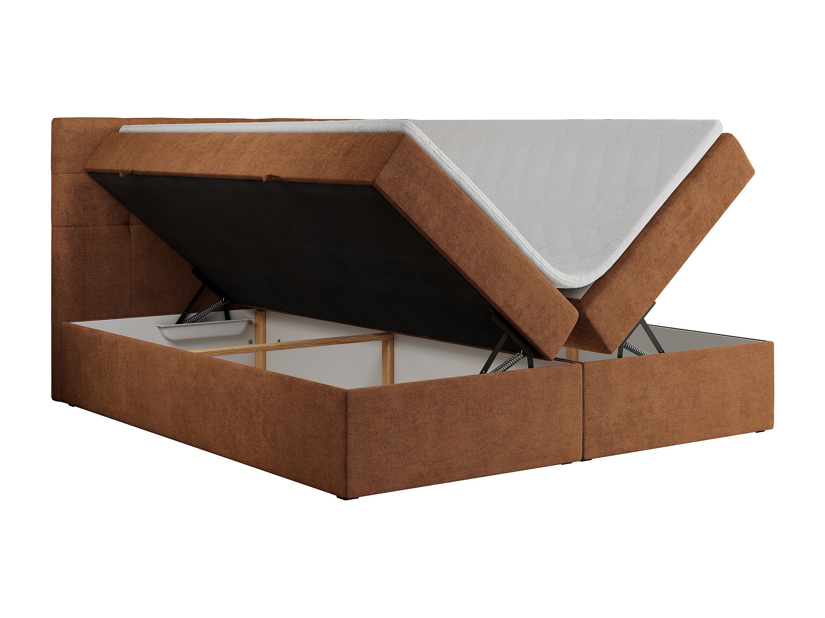 Boxspringbett CENTOS mit gestepptem Kopfteil, Multipocket-Matratze, Doppelbett mit Stauraum - 120x200 cm - H4 - Orange Struktur