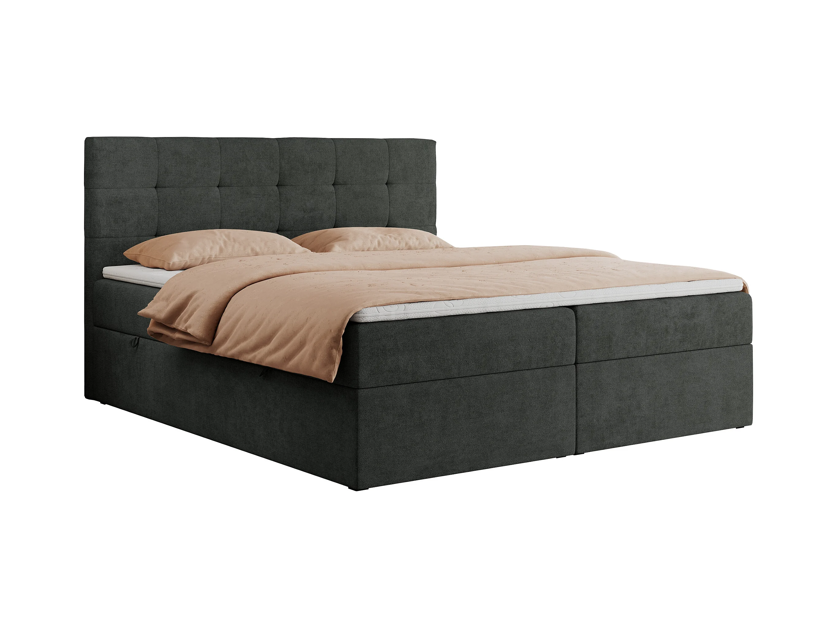 Boxspringbett CENTOS mit gestepptem Kopfteil, Multipocket-Matratze, Doppelbett mit Stauraum - 140x200 cm - H3 - Dunkelgrau Struktur