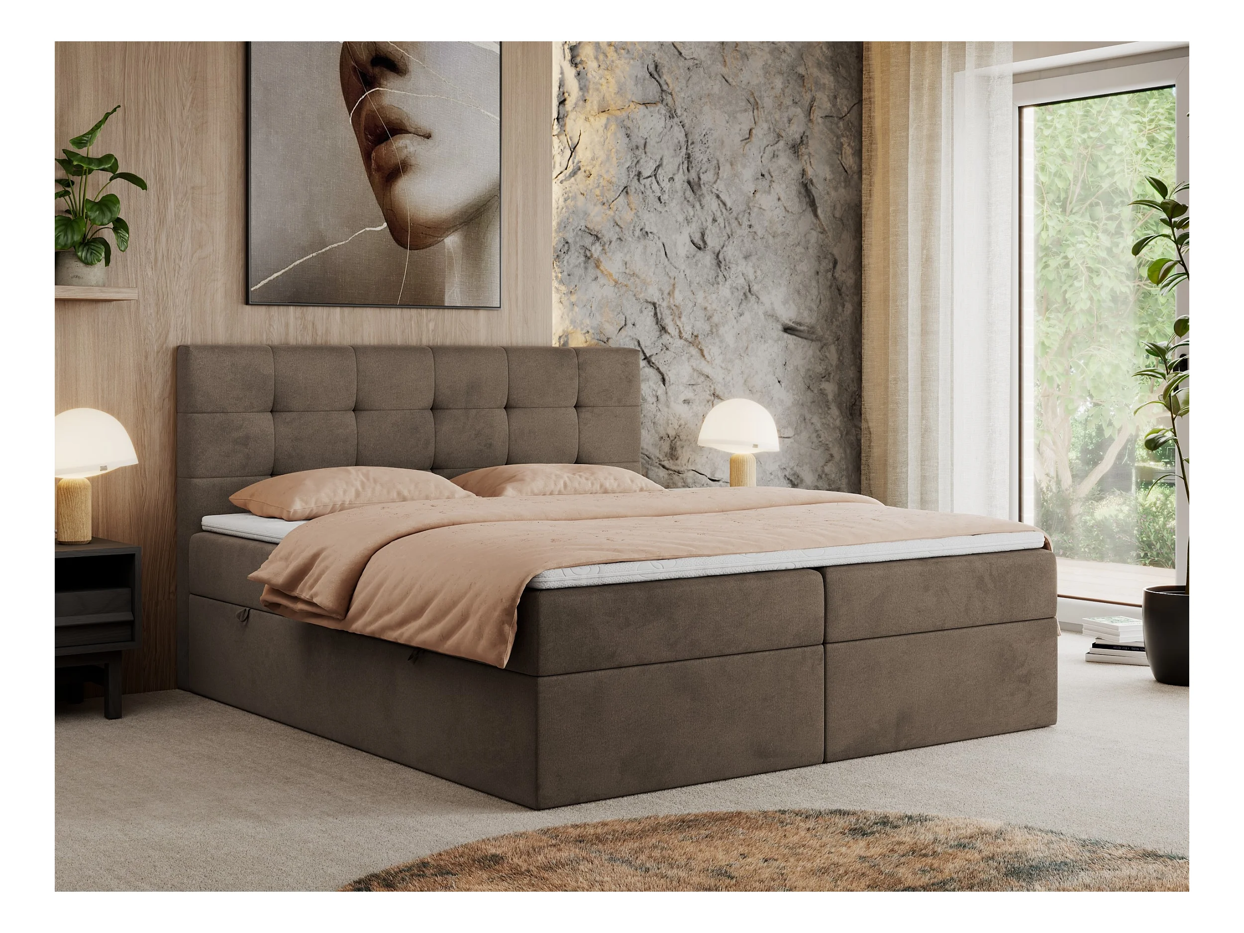Boxspringbett CENTOS mit gestepptem Kopfteil, Multipocket-Matratze, Doppelbett mit Stauraum - 160x200 cm - H4 - Braun Velvet