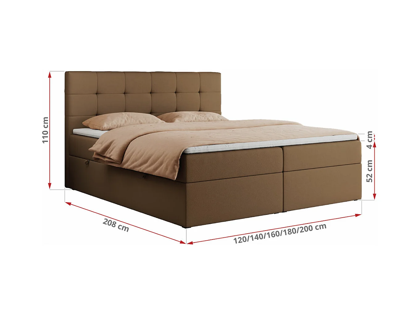 Boxspringbett CENTOS mit gestepptem Kopfteil, Multipocket-Matratze, Doppelbett mit Stauraum - 180x200 cm - H3 - Braun Kunstleder
