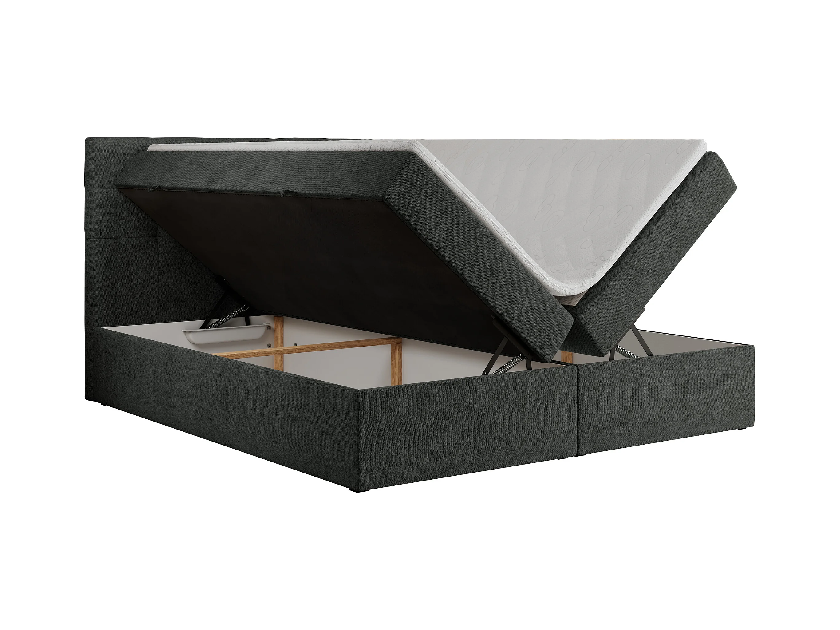 Boxspringbett CENTOS mit gestepptem Kopfteil, Multipocket-Matratze, Doppelbett mit Stauraum - 180x200 cm - H4 - Dunkelgrau Struktur