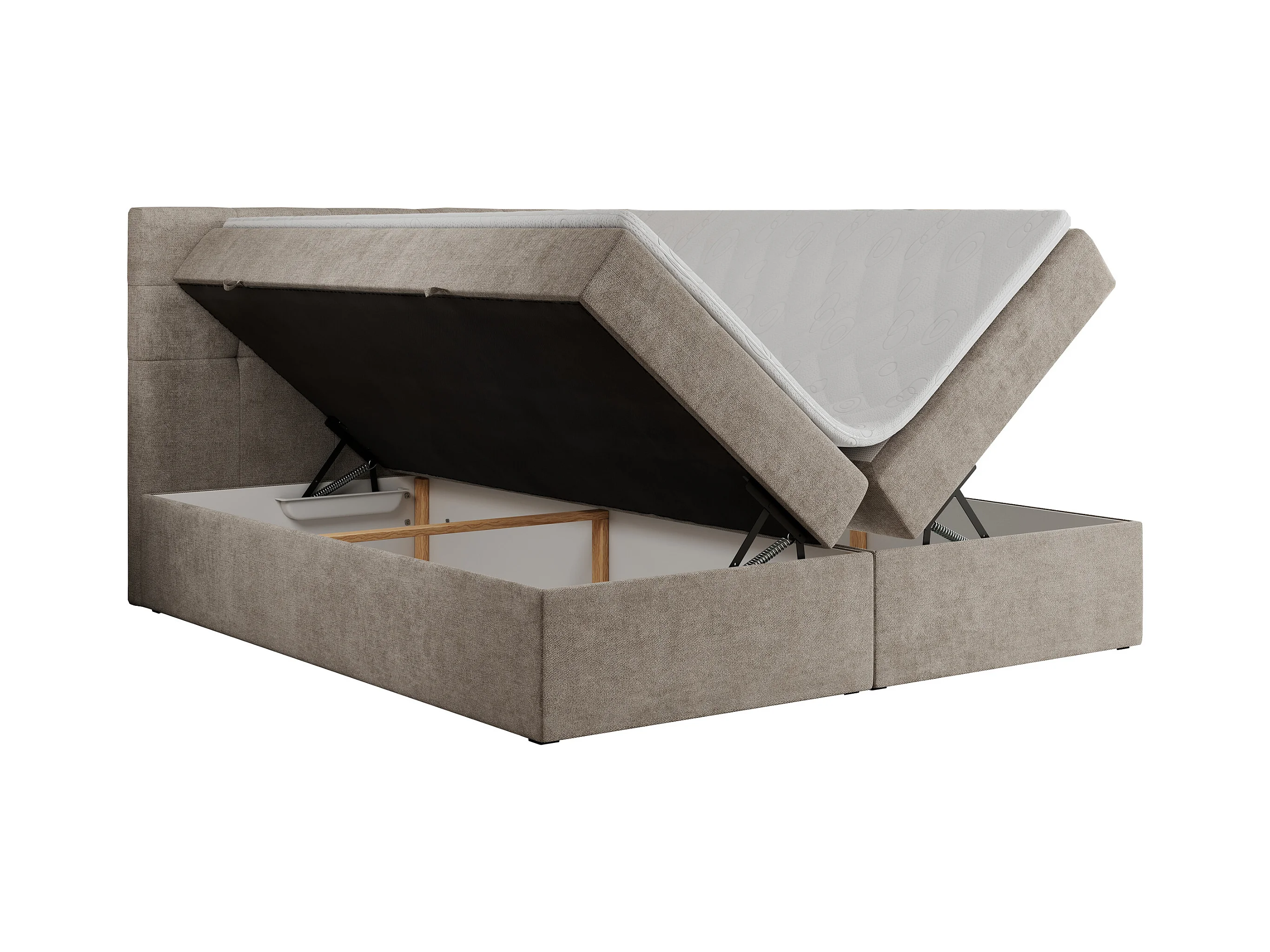 Boxspringbett CENTOS mit gestepptem Kopfteil, Multipocket-Matratze, Doppelbett mit Stauraum - 200x200 cm - H3 - Beige Struktur