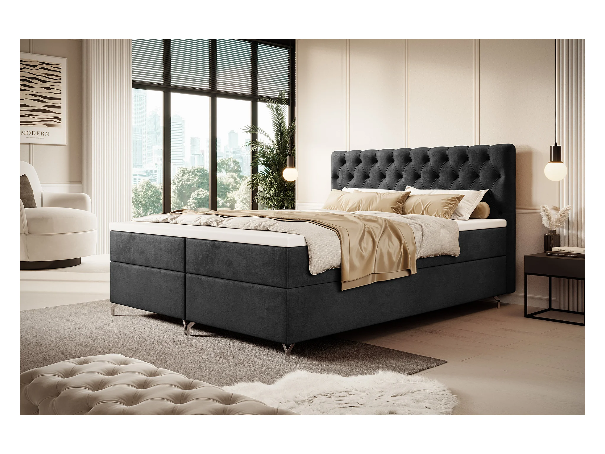 BEDANTE Boxspringbett CHESTER 160x200 Monolith 97, Antrazit, Bettkasten, Chromfüße, Ehebett, Hotelbett, Topper, Matratze, Bonell, Stauraum, Polsterbett