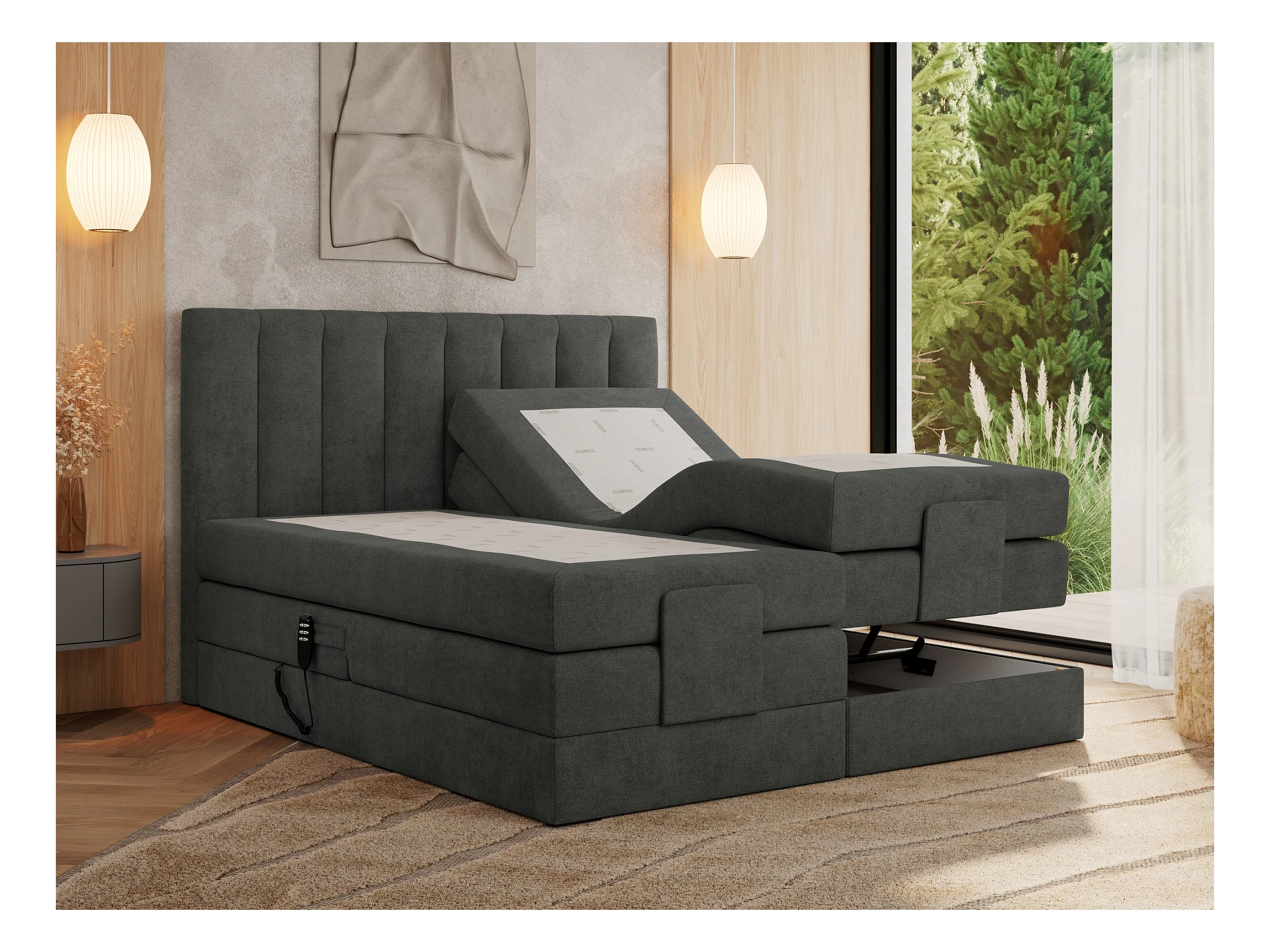 Boxspringbett COMFORTO - Doppelbett, Elektrisch verstellbare, Multipocket-Matratzen und Topper, genähtes Kopfteil - 180x200 cm - H3 - Dunkelgrau Strukture