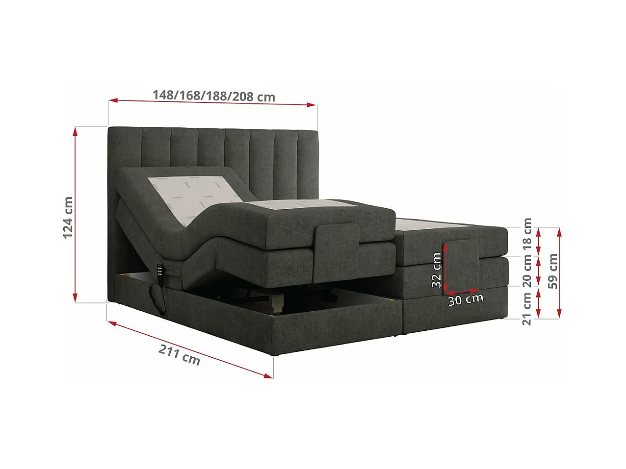 Boxspringbett COMFORTO - Doppelbett, Elektrisch verstellbare, Multipocket-Matratzen und Topper, genähtes Kopfteil - 180x200 cm - H4 - Dunkelgrau Velvet