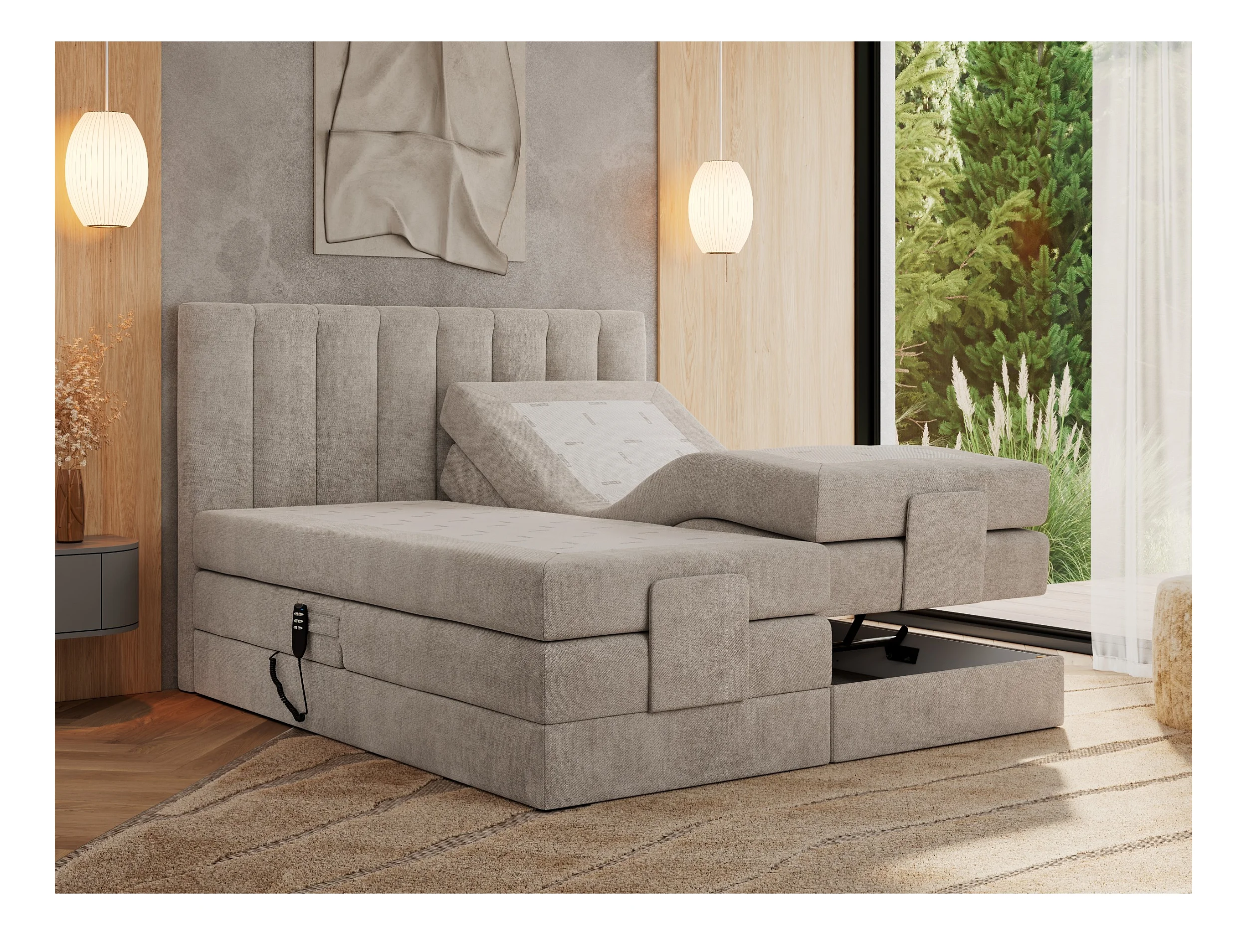 Boxspringbett COMFORTO - Doppelbett, Elektrisch verstellbare, Multipocket-Matratzen und Topper, genähtes Kopfteil - 200x200 cm - H3 - Beige Strukture