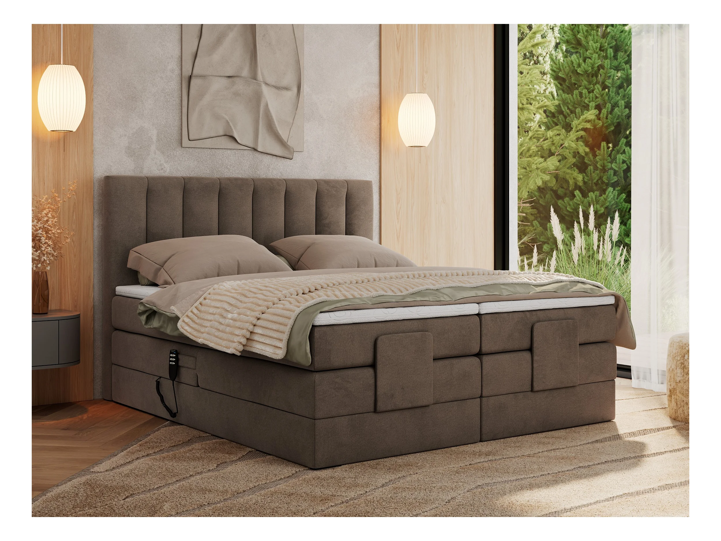 Boxspringbett COMFORTO - Doppelbett, Elektrisch verstellbare, Multipocket-Matratzen und Topper, genähtes Kopfteil - 200x200 cm - H3 - Braun Velvet