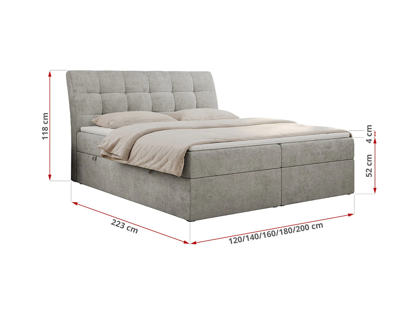 Boxspringbett DIEGOS mit Stauraum, gestepptem Kopfteil, Multipocket-Matratze - 120x200 cm - H3 - Hellgrau Strukture