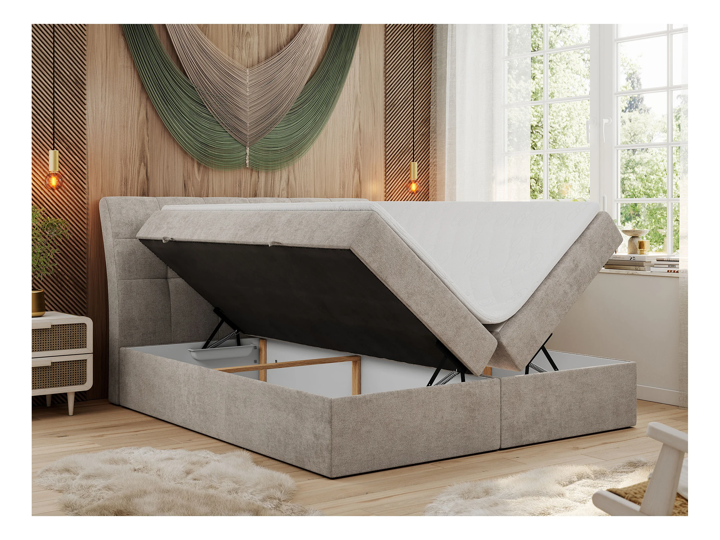 Boxspringbett DIEGOS mit Stauraum, gestepptem Kopfteil, Multipocket-Matratze - 140x200 cm - H3 - Beige Strukture