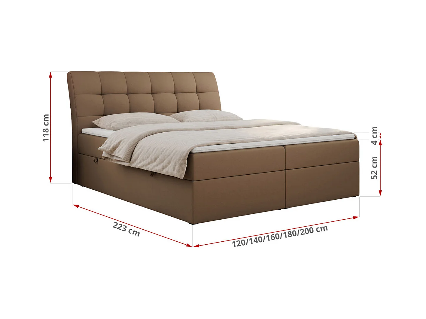 Boxspringbett DIEGOS mit Stauraum, gestepptem Kopfteil, Multipocket-Matratze - 140x200 cm - H3 - Braun Kunstleder