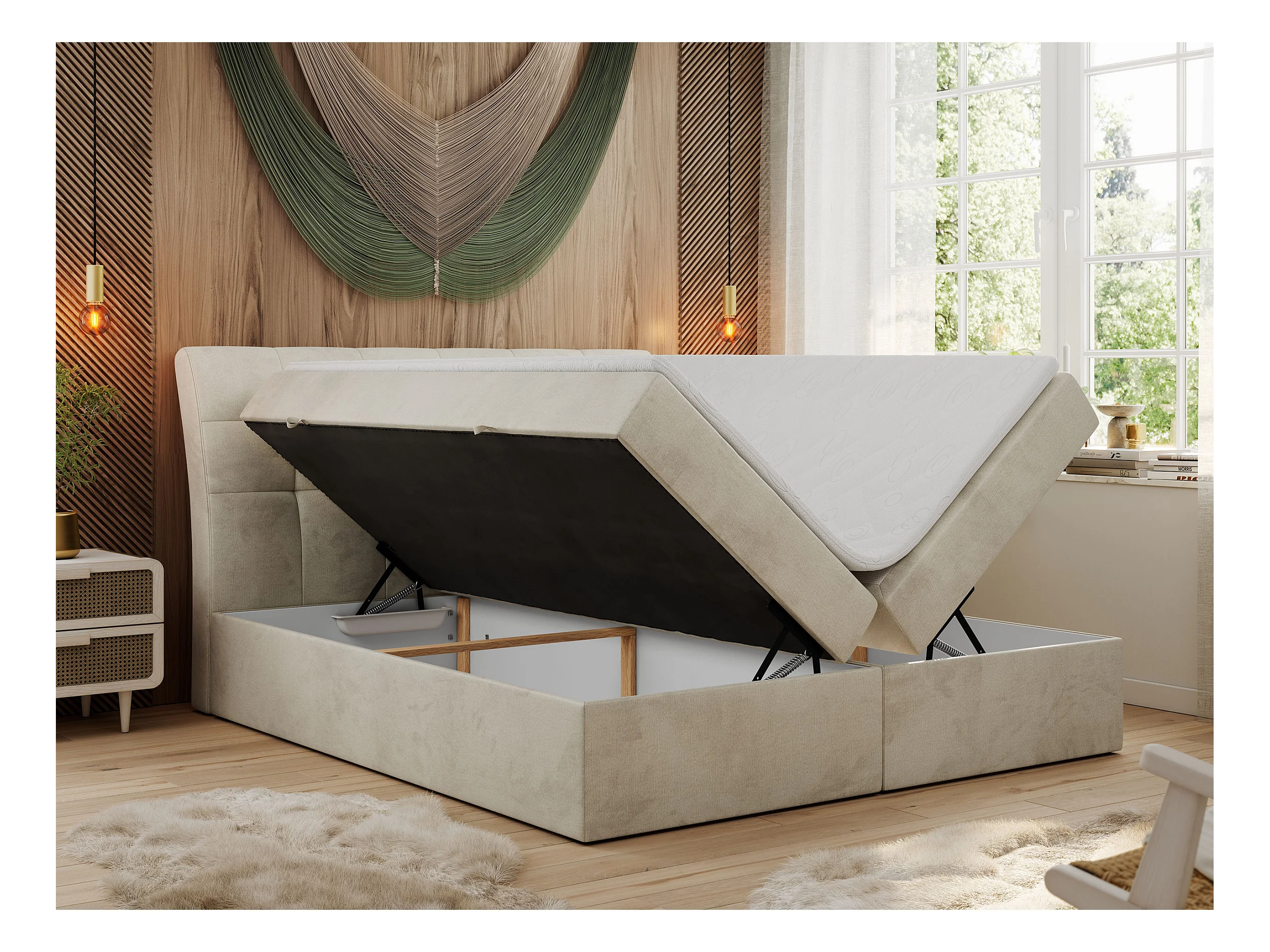 Boxspringbett DIEGOS mit Stauraum, gestepptem Kopfteil, Multipocket-Matratze - 160x200 cm - H4 - Beige Velvet