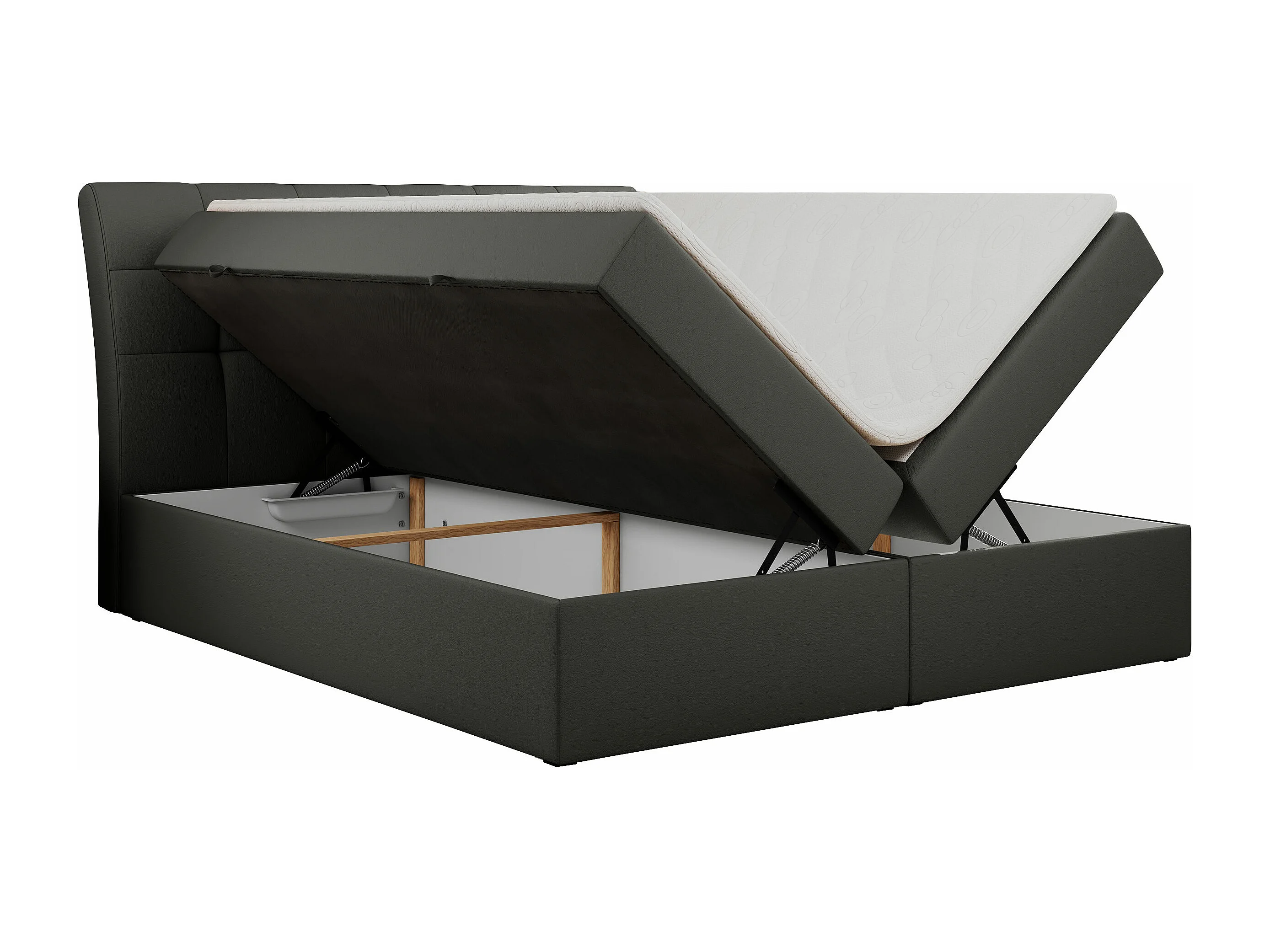 Boxspringbett DIEGOS mit Stauraum, gestepptem Kopfteil, Multipocket-Matratze - 160x200 cm - H4 - Dunkelgrau Kunstleder