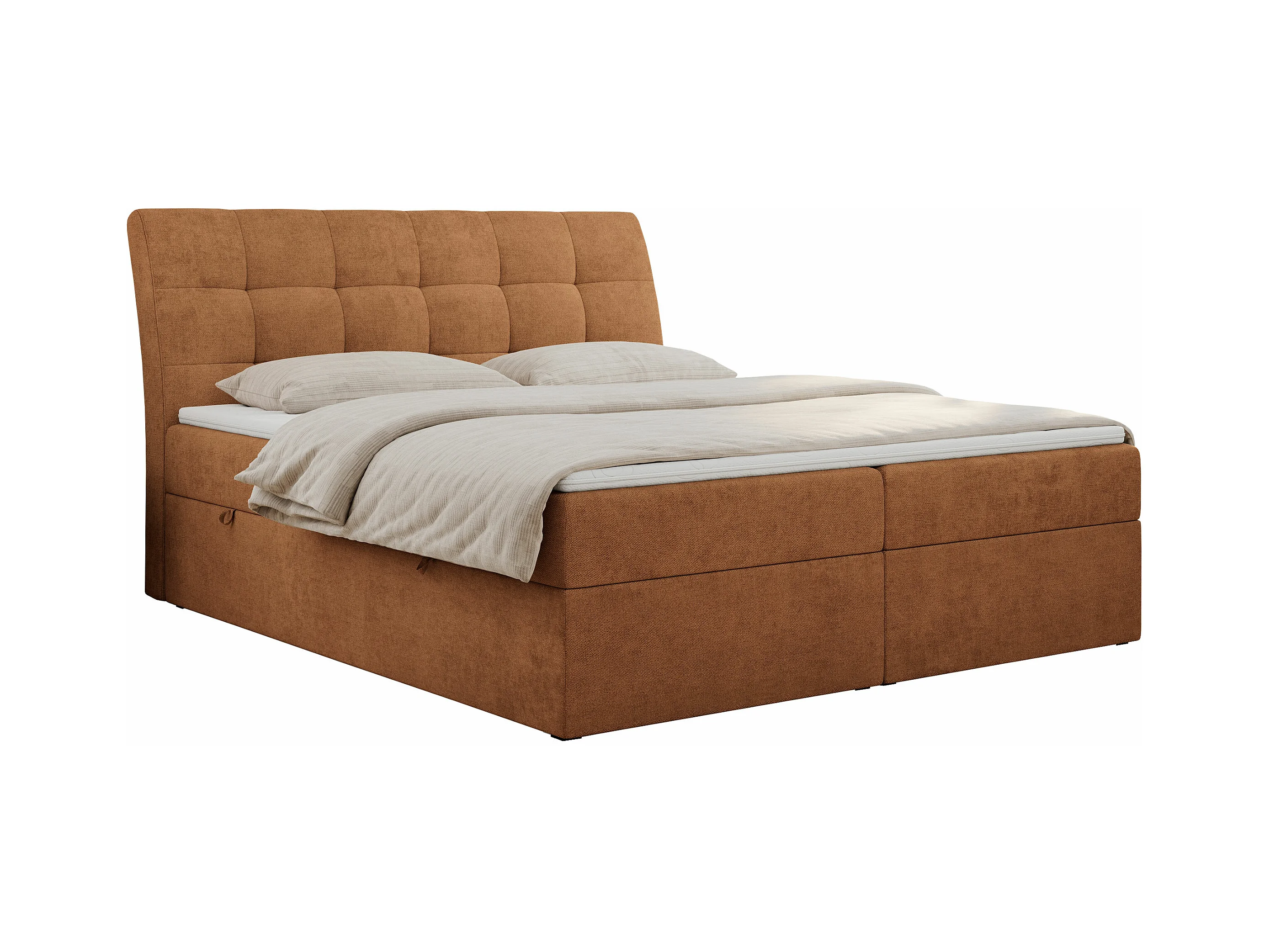 Boxspringbett DIEGOS mit Stauraum, gestepptem Kopfteil, Multipocket-Matratze - 200x200 cm - H3 - Orange Strukture